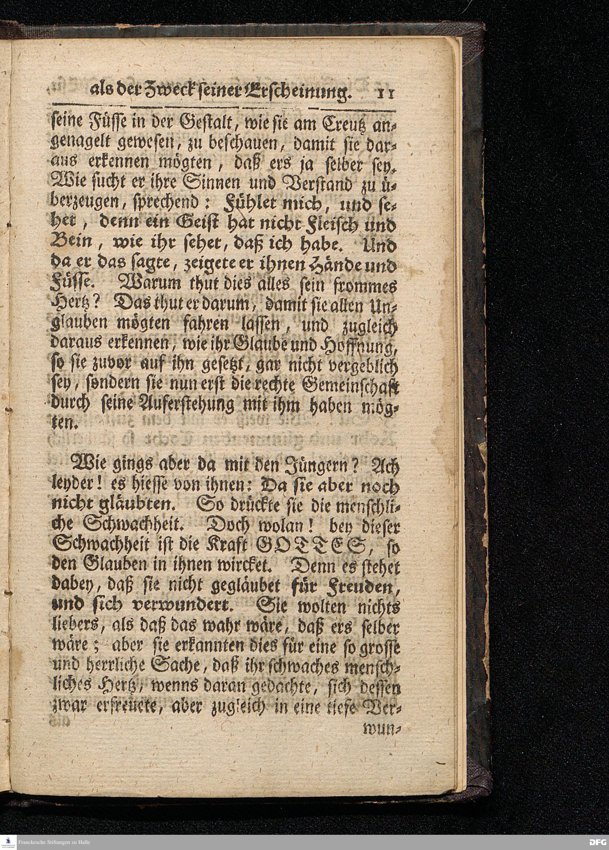Die Gemeinschaft mit dem auferstandenen JEsu / Als Der Zweck seiner Erscheinung / Am 3ten Oster=Feyertage MDCCXVI. Aus dem Evangelio Luc.XXIV, 36--47. In der Schul=Kirche zu Halle vorgestellet von August Hermann Francken / S.Theolog.Prof.& Past.zu S.Ulrich, und des Gymnasii Scholarcha. HALLE, Gedruckt und zu finden im Wäysen=Hause. Anno 1716.