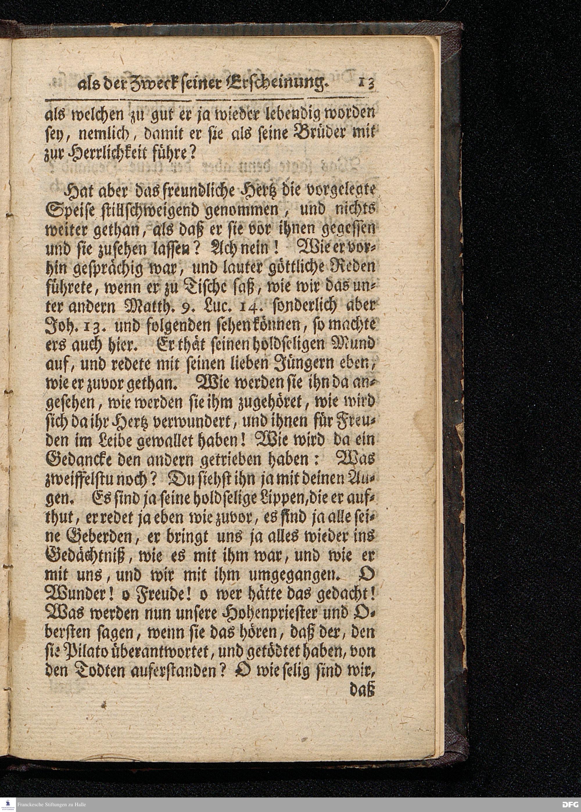 Die Gemeinschaft mit dem auferstandenen JEsu / Als Der Zweck seiner Erscheinung / Am 3ten Oster=Feyertage MDCCXVI. Aus dem Evangelio Luc.XXIV, 36--47. In der Schul=Kirche zu Halle vorgestellet von August Hermann Francken / S.Theolog.Prof.& Past.zu S.Ulrich, und des Gymnasii Scholarcha. HALLE, Gedruckt und zu finden im Wäysen=Hause. Anno 1716.