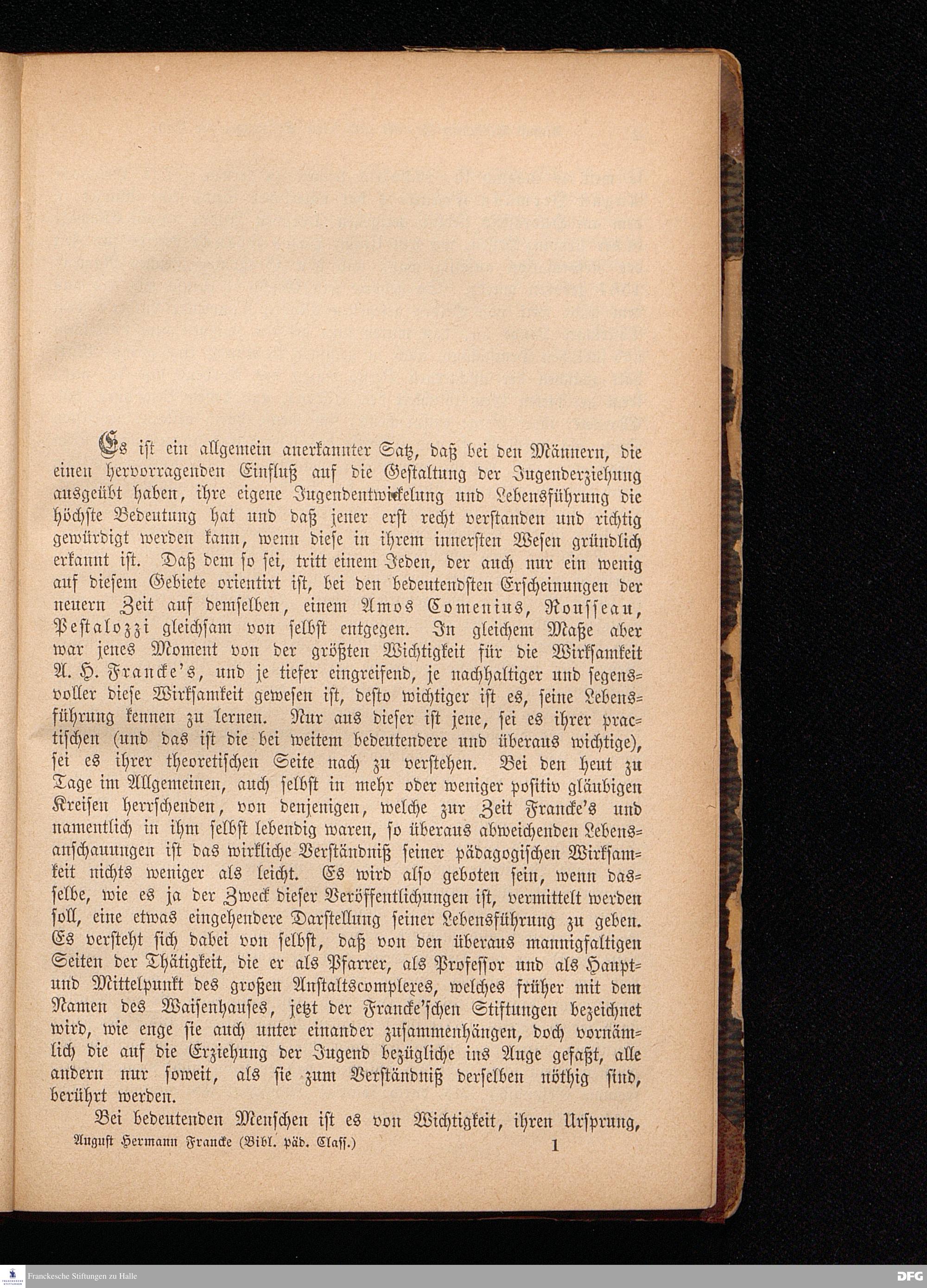 A.H.Francke's Pädagogische Schriften. Nebst der Darstellung seines Lebens und seiner Stiftungen herausgegeben von D. G[ustav] Kramer, Director der Franckeschen Stiftungen. Langensalza, Verlags=Comptoir von Hermann Beyer. 1876.