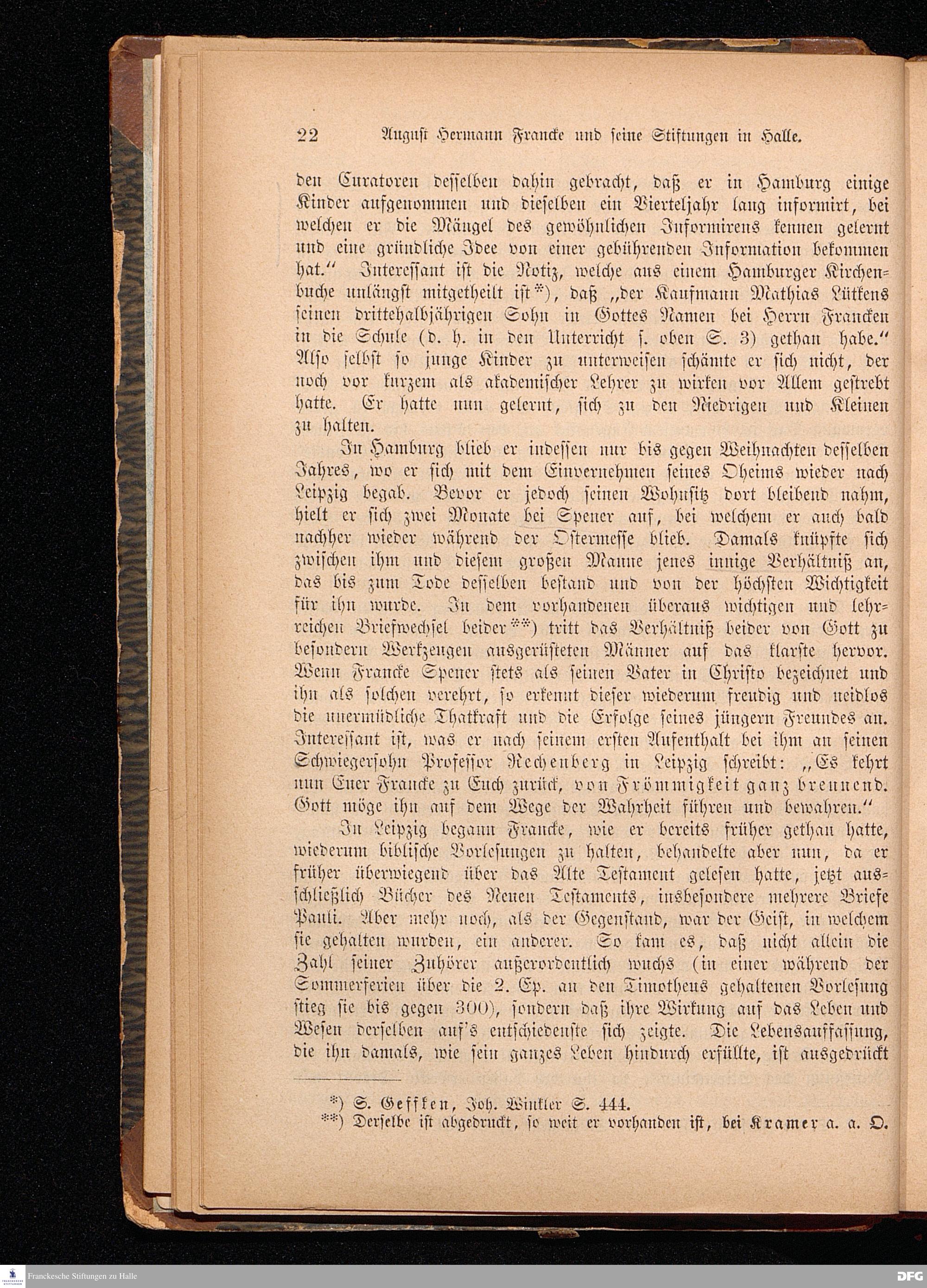 A.H.Francke's Pädagogische Schriften. Nebst der Darstellung seines Lebens und seiner Stiftungen herausgegeben von D. G[ustav] Kramer, Director der Franckeschen Stiftungen. Langensalza, Verlags=Comptoir von Hermann Beyer. 1876.