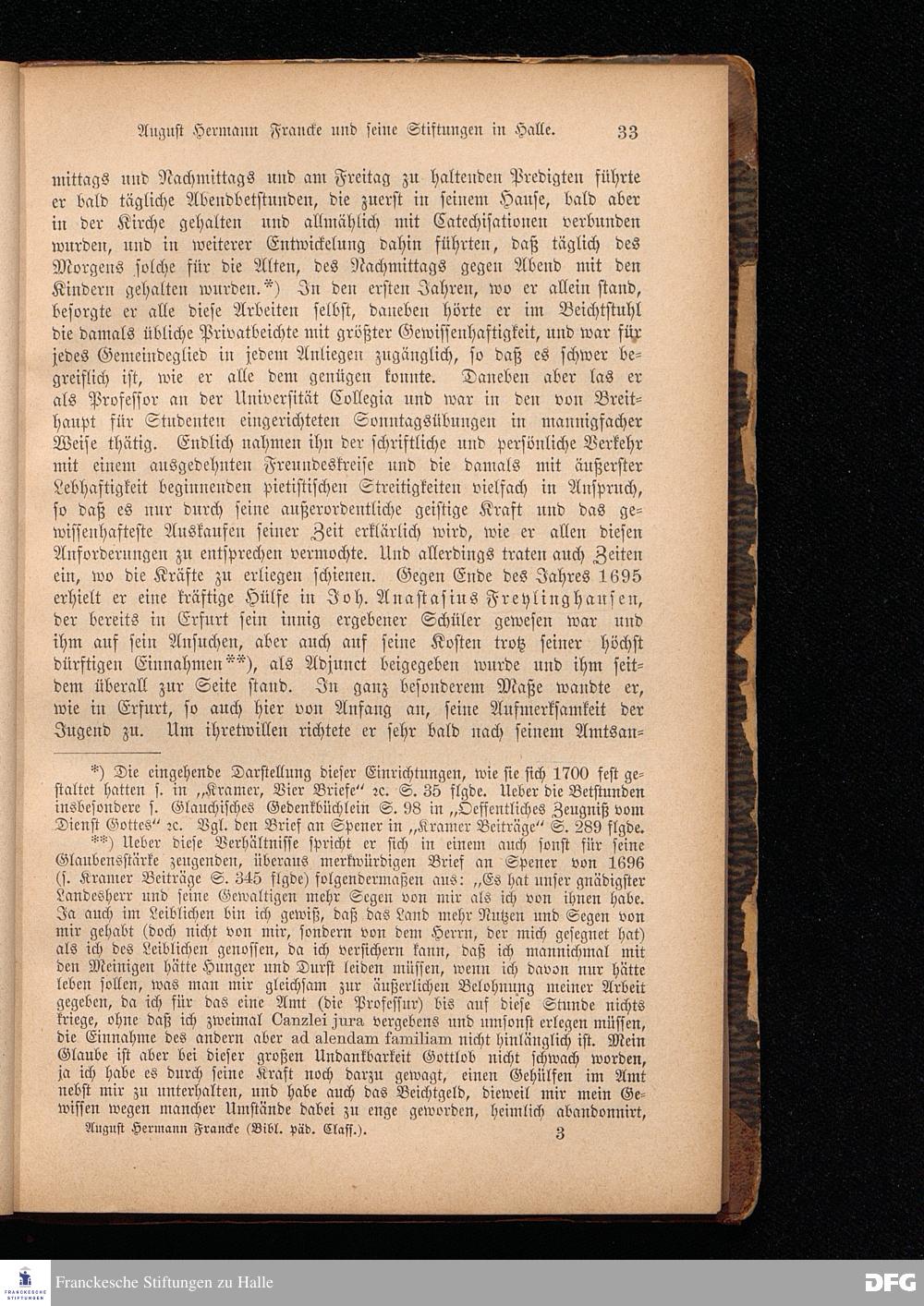 A.H.Francke's Pädagogische Schriften. Nebst der Darstellung seines Lebens und seiner Stiftungen herausgegeben von D. G[ustav] Kramer, Director der Franckeschen Stiftungen. Langensalza, Verlags=Comptoir von Hermann Beyer. 1876.