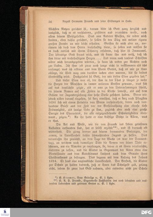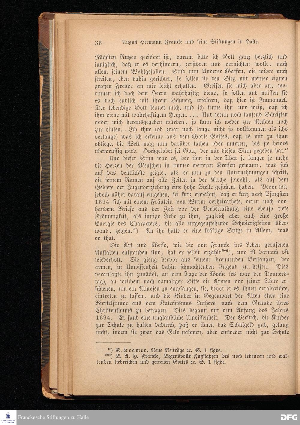 A.H.Francke's Pädagogische Schriften. Nebst der Darstellung seines Lebens und seiner Stiftungen herausgegeben von D. G[ustav] Kramer, Director der Franckeschen Stiftungen. Langensalza, Verlags=Comptoir von Hermann Beyer. 1876.