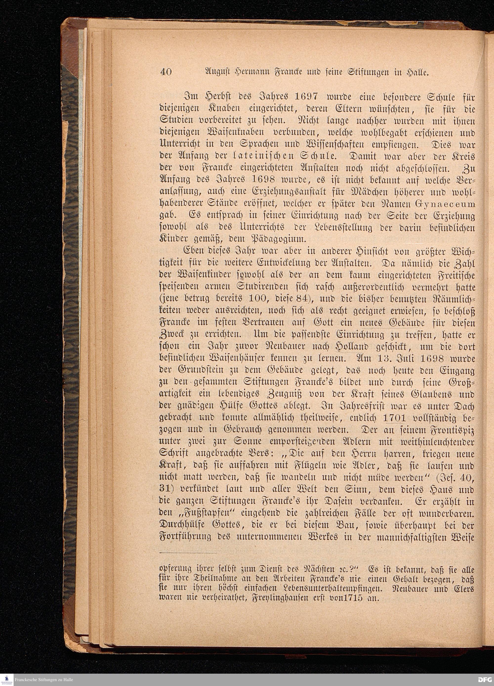 A.H.Francke's Pädagogische Schriften. Nebst der Darstellung seines Lebens und seiner Stiftungen herausgegeben von D. G[ustav] Kramer, Director der Franckeschen Stiftungen. Langensalza, Verlags=Comptoir von Hermann Beyer. 1876.