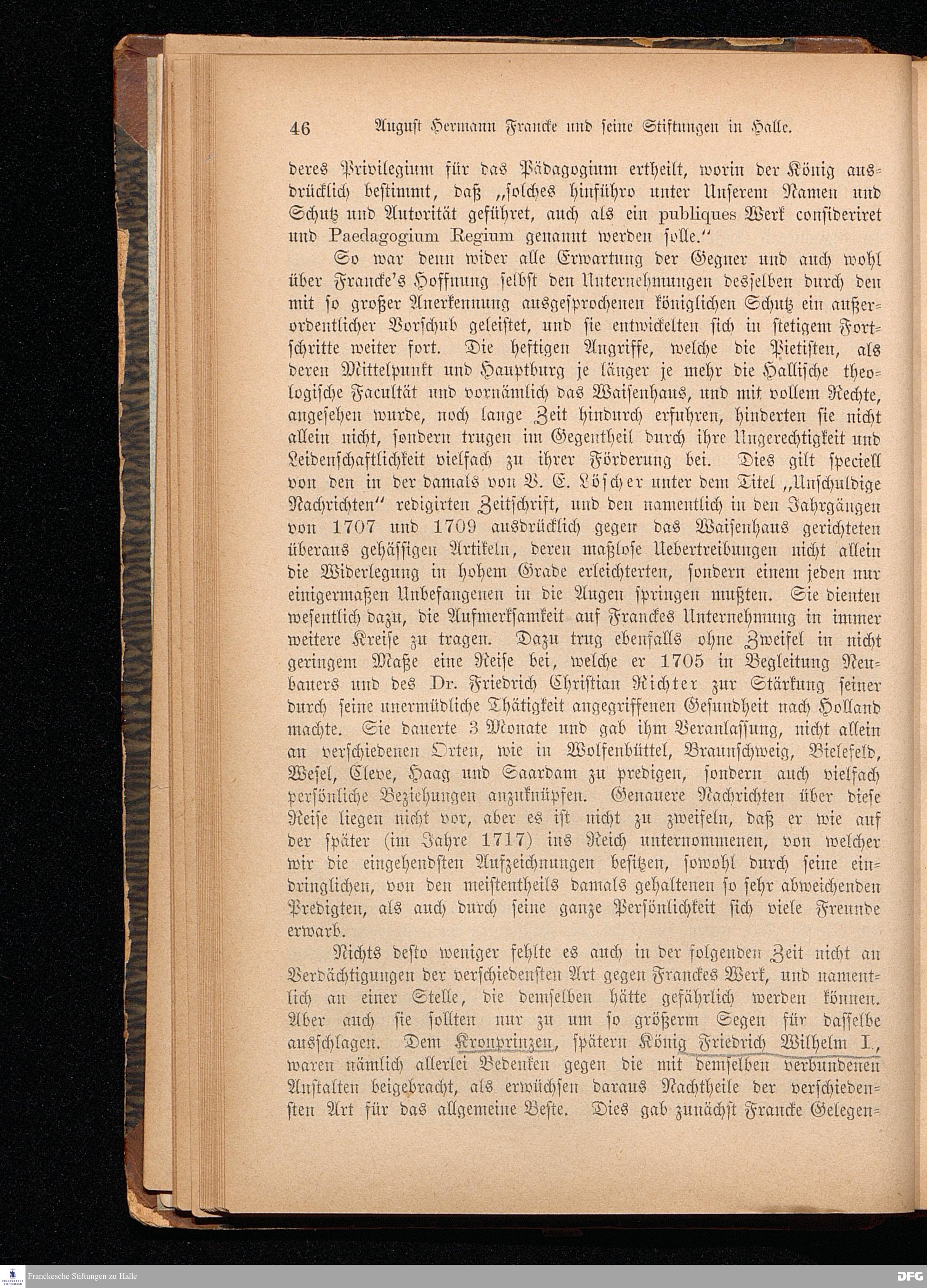 A.H.Francke's Pädagogische Schriften. Nebst der Darstellung seines Lebens und seiner Stiftungen herausgegeben von D. G[ustav] Kramer, Director der Franckeschen Stiftungen. Langensalza, Verlags=Comptoir von Hermann Beyer. 1876.