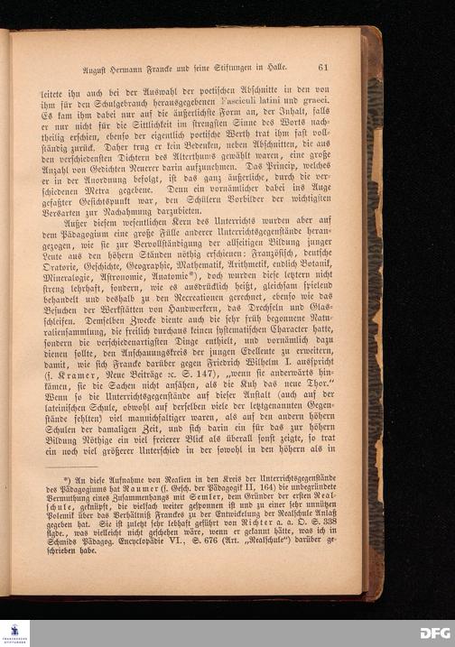 A.H.Francke's Pädagogische Schriften. Nebst der Darstellung seines Lebens und seiner Stiftungen herausgegeben von D. G[ustav] Kramer, Director der Franckeschen Stiftungen. Langensalza, Verlags=Comptoir von Hermann Beyer. 1876.