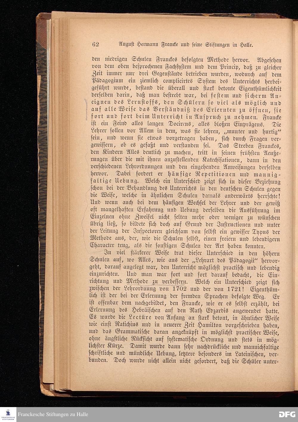 A.H.Francke's Pädagogische Schriften. Nebst der Darstellung seines Lebens und seiner Stiftungen herausgegeben von D. G[ustav] Kramer, Director der Franckeschen Stiftungen. Langensalza, Verlags=Comptoir von Hermann Beyer. 1876.