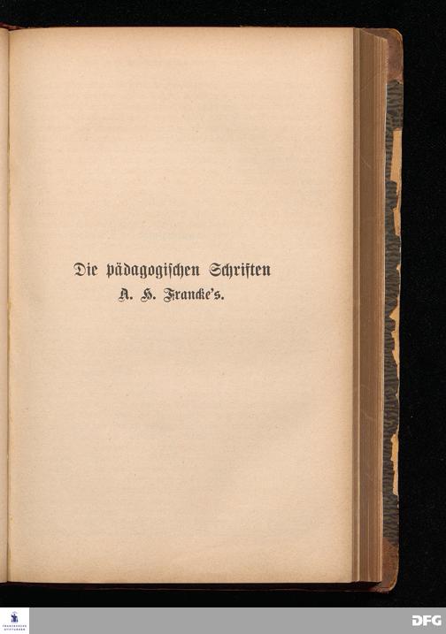 A.H.Francke's Pädagogische Schriften. Nebst der Darstellung seines Lebens und seiner Stiftungen herausgegeben von D. G[ustav] Kramer, Director der Franckeschen Stiftungen. Langensalza, Verlags=Comptoir von Hermann Beyer. 1876.