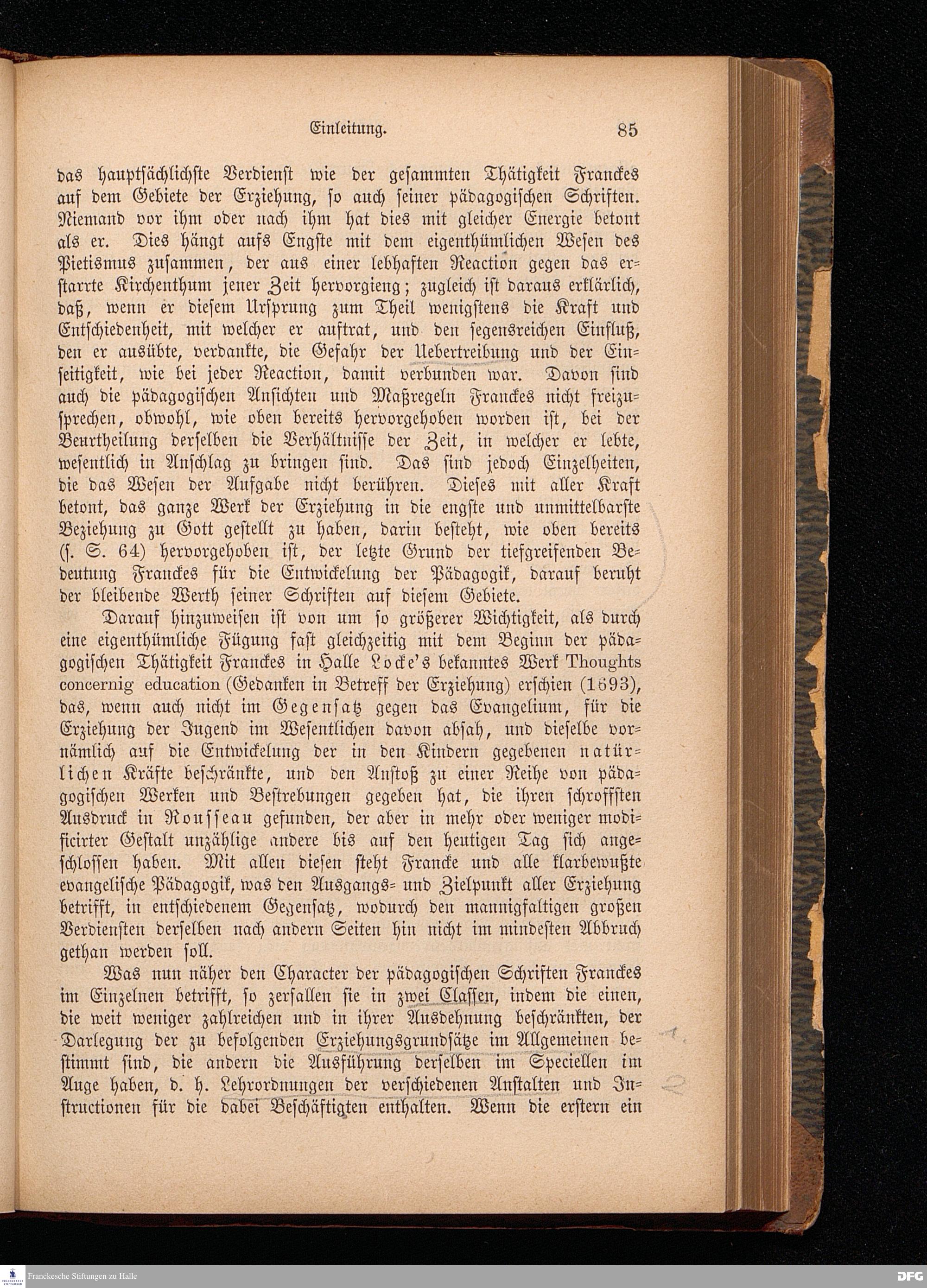 A.H.Francke's Pädagogische Schriften. Nebst der Darstellung seines Lebens und seiner Stiftungen herausgegeben von D. G[ustav] Kramer, Director der Franckeschen Stiftungen. Langensalza, Verlags=Comptoir von Hermann Beyer. 1876.