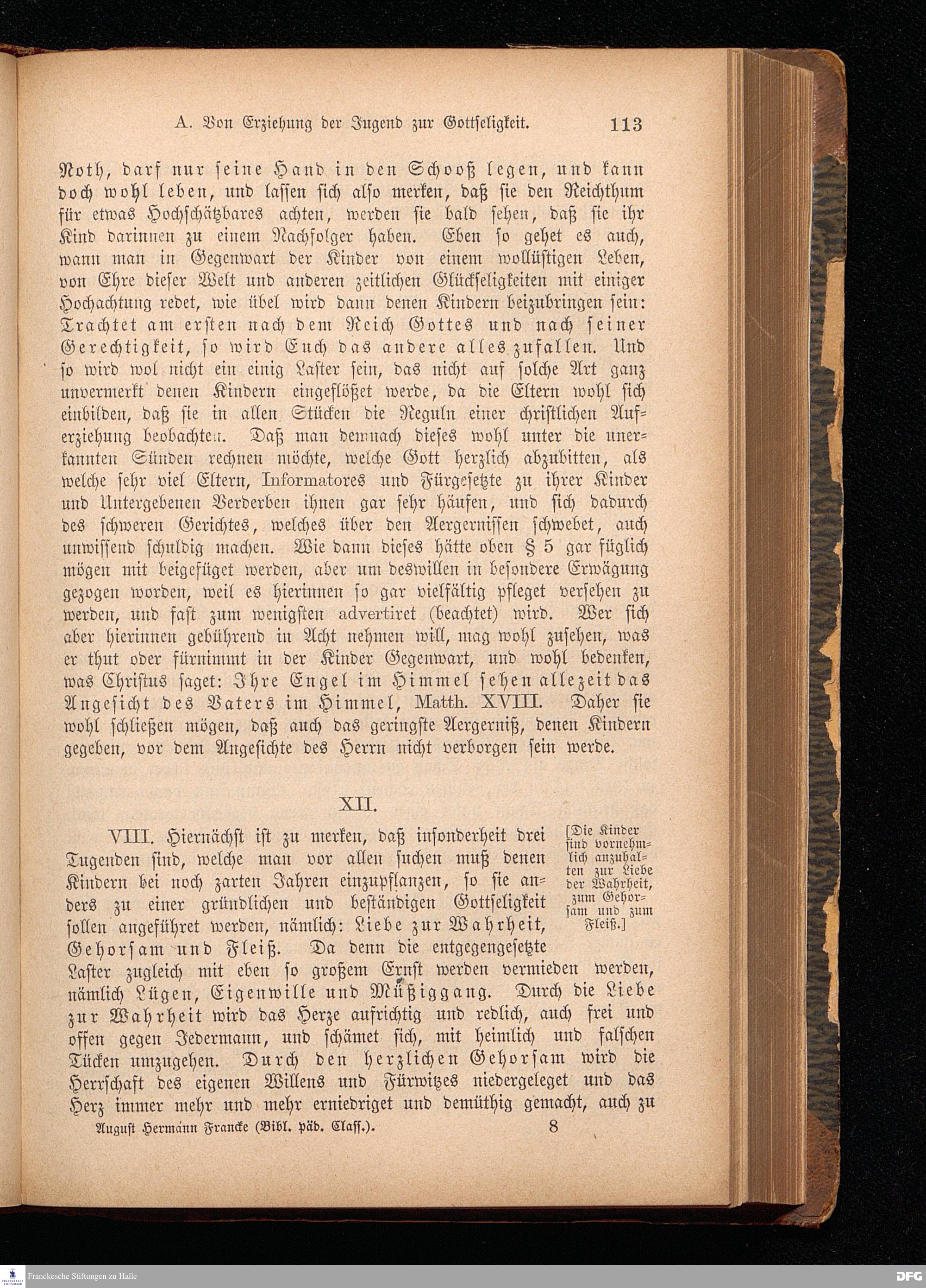 A.H.Francke's Pädagogische Schriften. Nebst der Darstellung seines Lebens und seiner Stiftungen herausgegeben von D. G[ustav] Kramer, Director der Franckeschen Stiftungen. Langensalza, Verlags=Comptoir von Hermann Beyer. 1876.