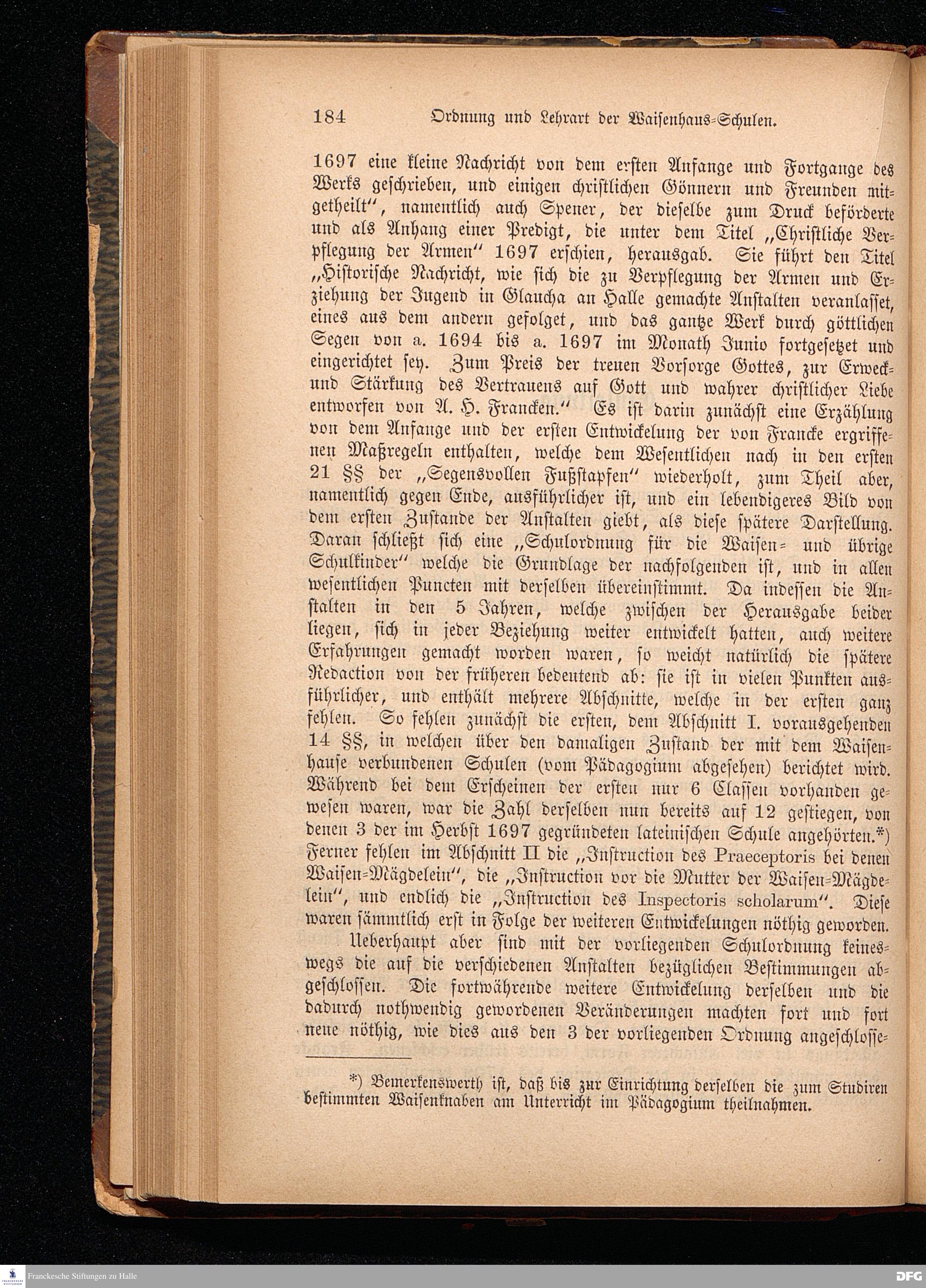 A.H.Francke's Pädagogische Schriften. Nebst der Darstellung seines Lebens und seiner Stiftungen herausgegeben von D. G[ustav] Kramer, Director der Franckeschen Stiftungen. Langensalza, Verlags=Comptoir von Hermann Beyer. 1876.