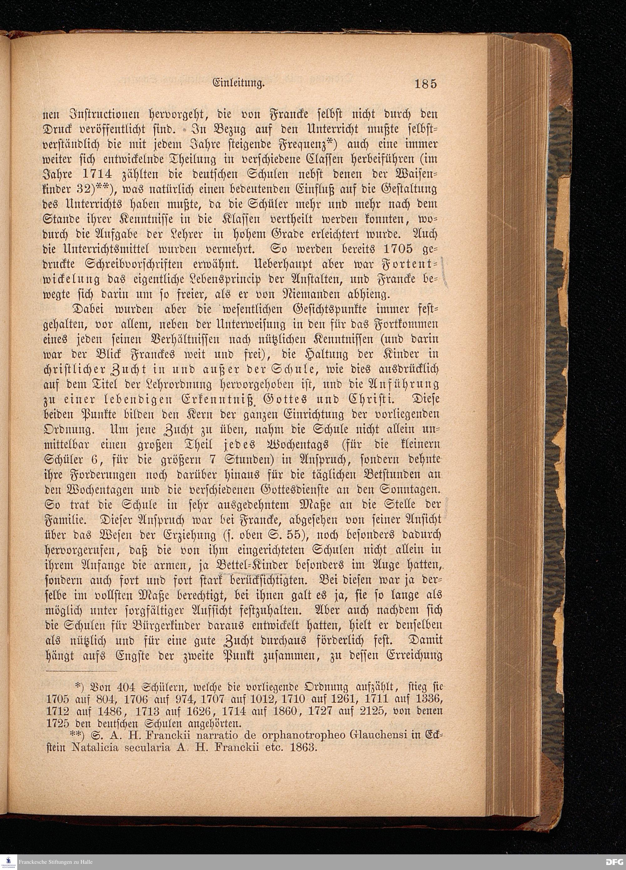 A.H.Francke's Pädagogische Schriften. Nebst der Darstellung seines Lebens und seiner Stiftungen herausgegeben von D. G[ustav] Kramer, Director der Franckeschen Stiftungen. Langensalza, Verlags=Comptoir von Hermann Beyer. 1876.