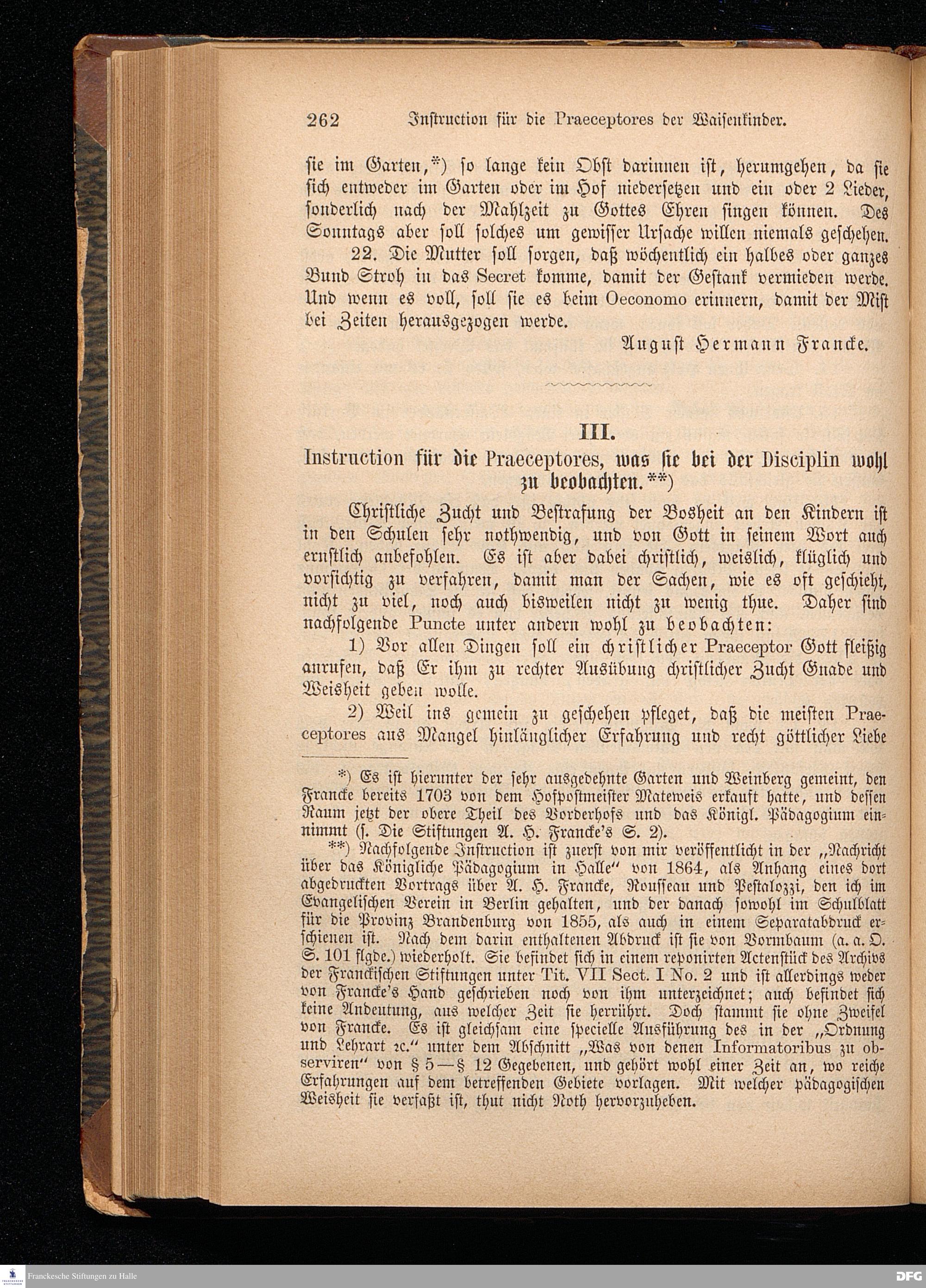 A.H.Francke's Pädagogische Schriften. Nebst der Darstellung seines Lebens und seiner Stiftungen herausgegeben von D. G[ustav] Kramer, Director der Franckeschen Stiftungen. Langensalza, Verlags=Comptoir von Hermann Beyer. 1876.