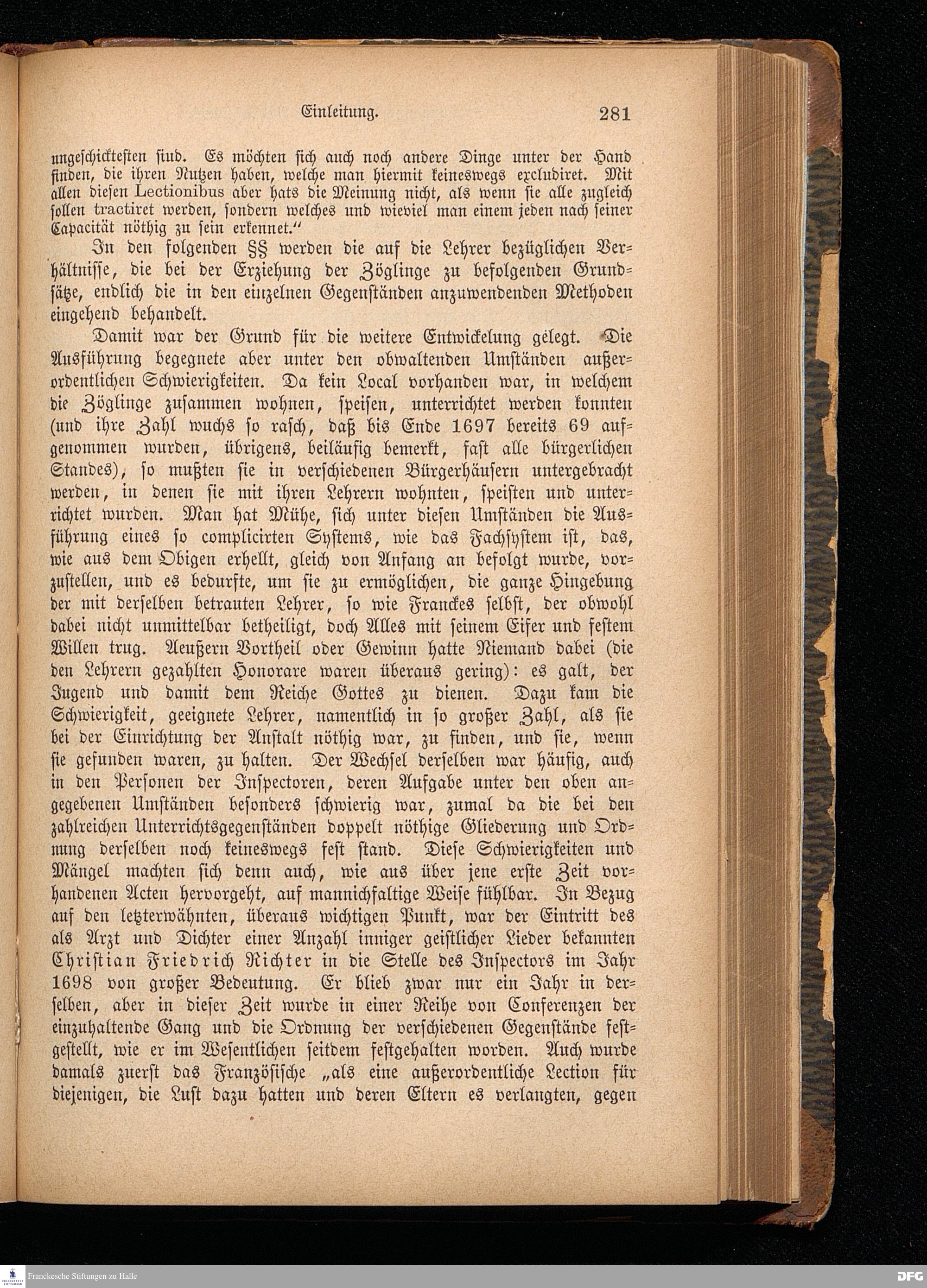 A.H.Francke's Pädagogische Schriften. Nebst der Darstellung seines Lebens und seiner Stiftungen herausgegeben von D. G[ustav] Kramer, Director der Franckeschen Stiftungen. Langensalza, Verlags=Comptoir von Hermann Beyer. 1876.