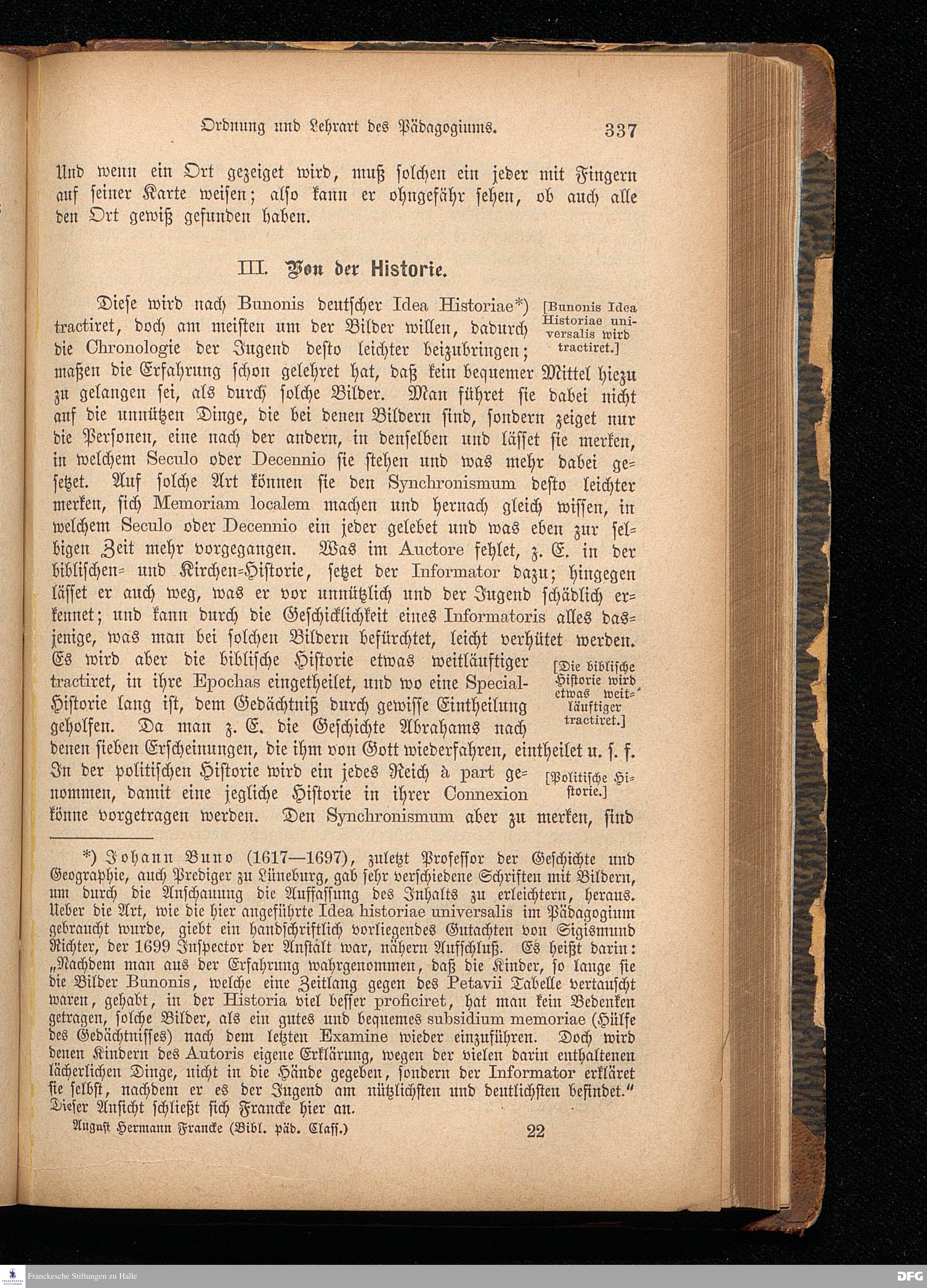 A.H.Francke's Pädagogische Schriften. Nebst der Darstellung seines Lebens und seiner Stiftungen herausgegeben von D. G[ustav] Kramer, Director der Franckeschen Stiftungen. Langensalza, Verlags=Comptoir von Hermann Beyer. 1876.