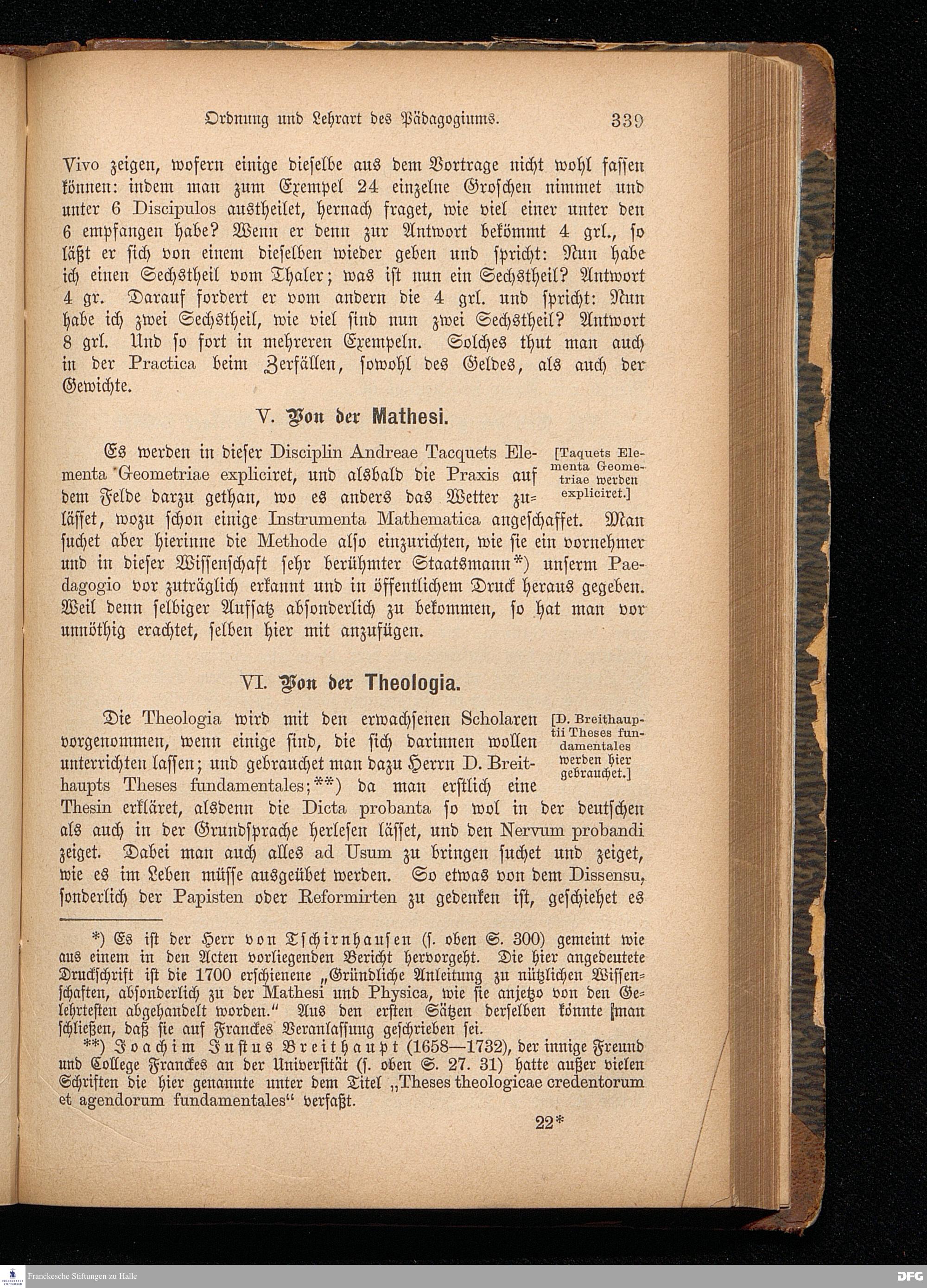 A.H.Francke's Pädagogische Schriften. Nebst der Darstellung seines Lebens und seiner Stiftungen herausgegeben von D. G[ustav] Kramer, Director der Franckeschen Stiftungen. Langensalza, Verlags=Comptoir von Hermann Beyer. 1876.