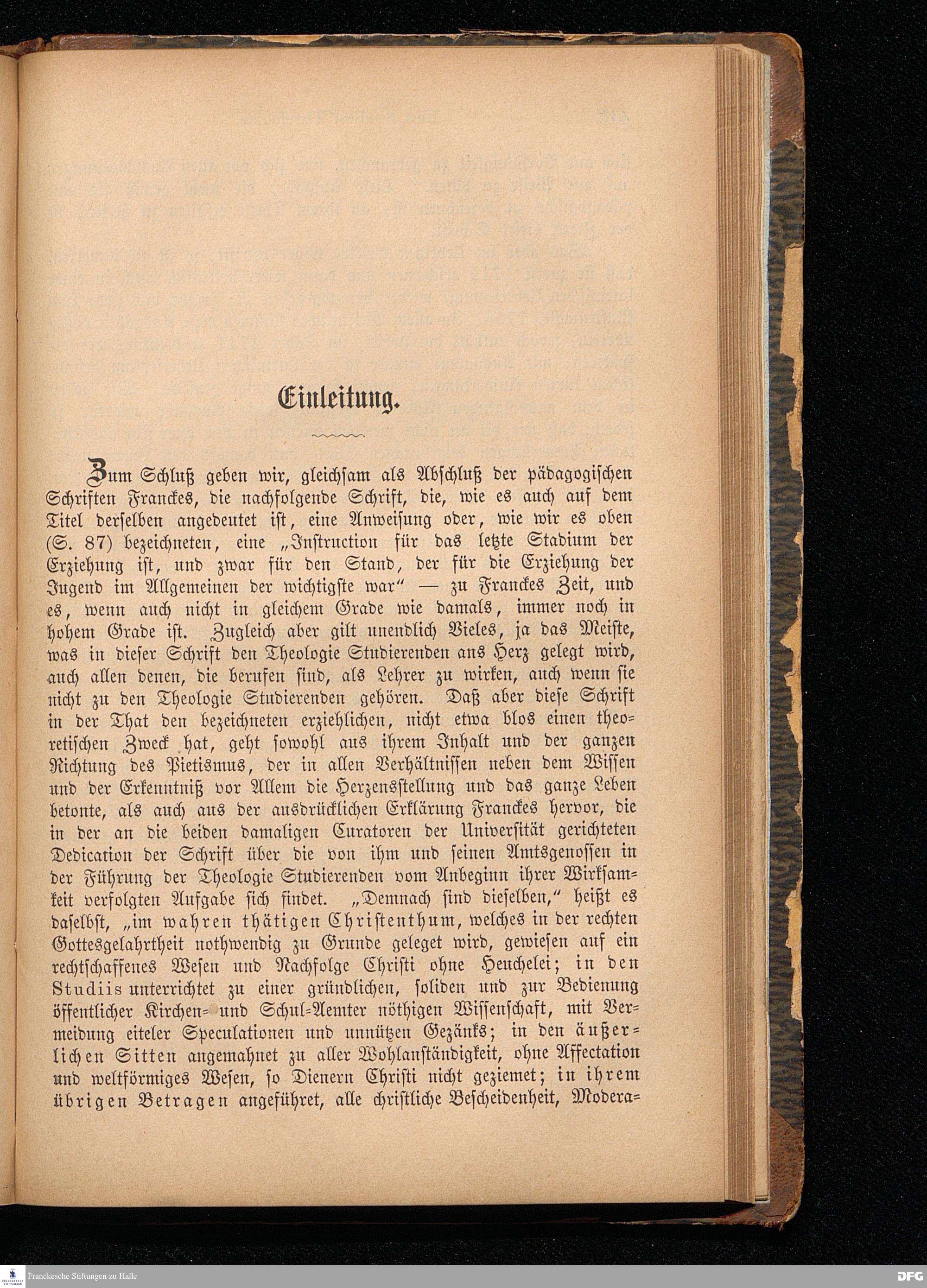 A.H.Francke's Pädagogische Schriften. Nebst der Darstellung seines Lebens und seiner Stiftungen herausgegeben von D. G[ustav] Kramer, Director der Franckeschen Stiftungen. Langensalza, Verlags=Comptoir von Hermann Beyer. 1876.
