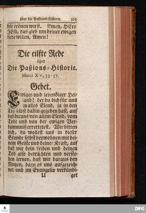 August Hermann Franckens S.THEOL.PROF.ORD.und PAST. Öffentliche Reden Uber die Paßions=Historie, Wie dieselbe Vom Evangelisten Marco im 14. und 15. Cap. beschrieben ist, Gehalten von Esto mihi bis Ostern 1712. In dem Waysenhause zu Glaucha an Halle. Vierte Edition. HALLE, verlegt im Wäysenhause, 1751.