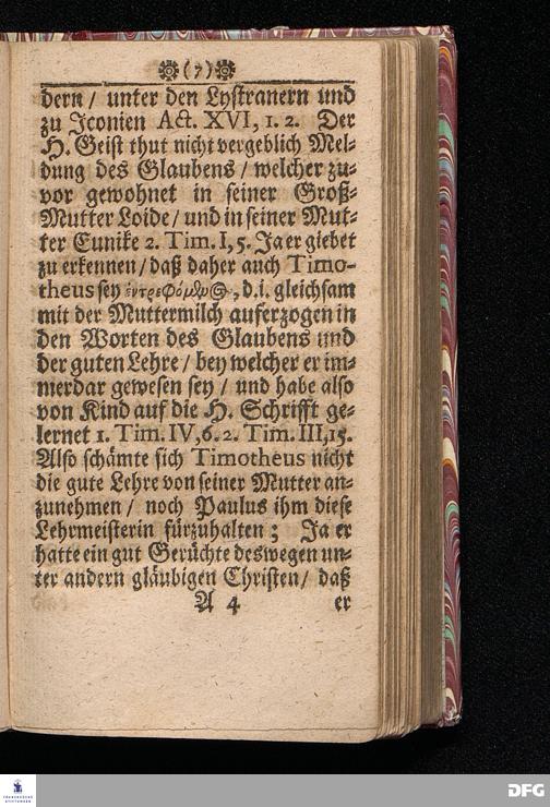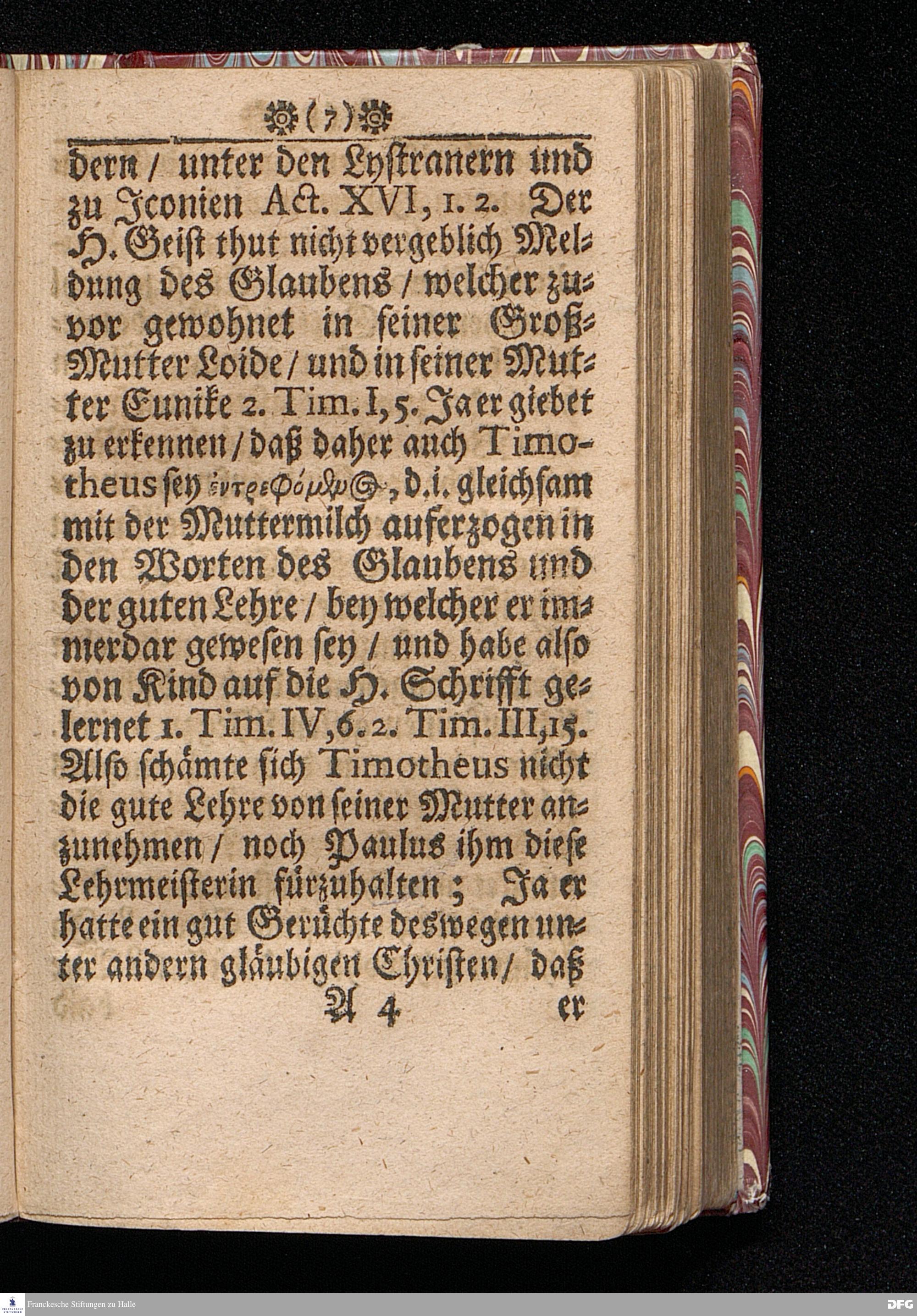 Timotheus Zum Fürbilde Allen Theologiæ Studiosis dargestellet von M.Aug.Hermann Francken / Gr.& Or.Lingg.P.P.& P.Glauch. Editio secunda & auctior. [Bibelzitat.] Halle / verlegts Joh.Friedrich Zeitler. 1695.