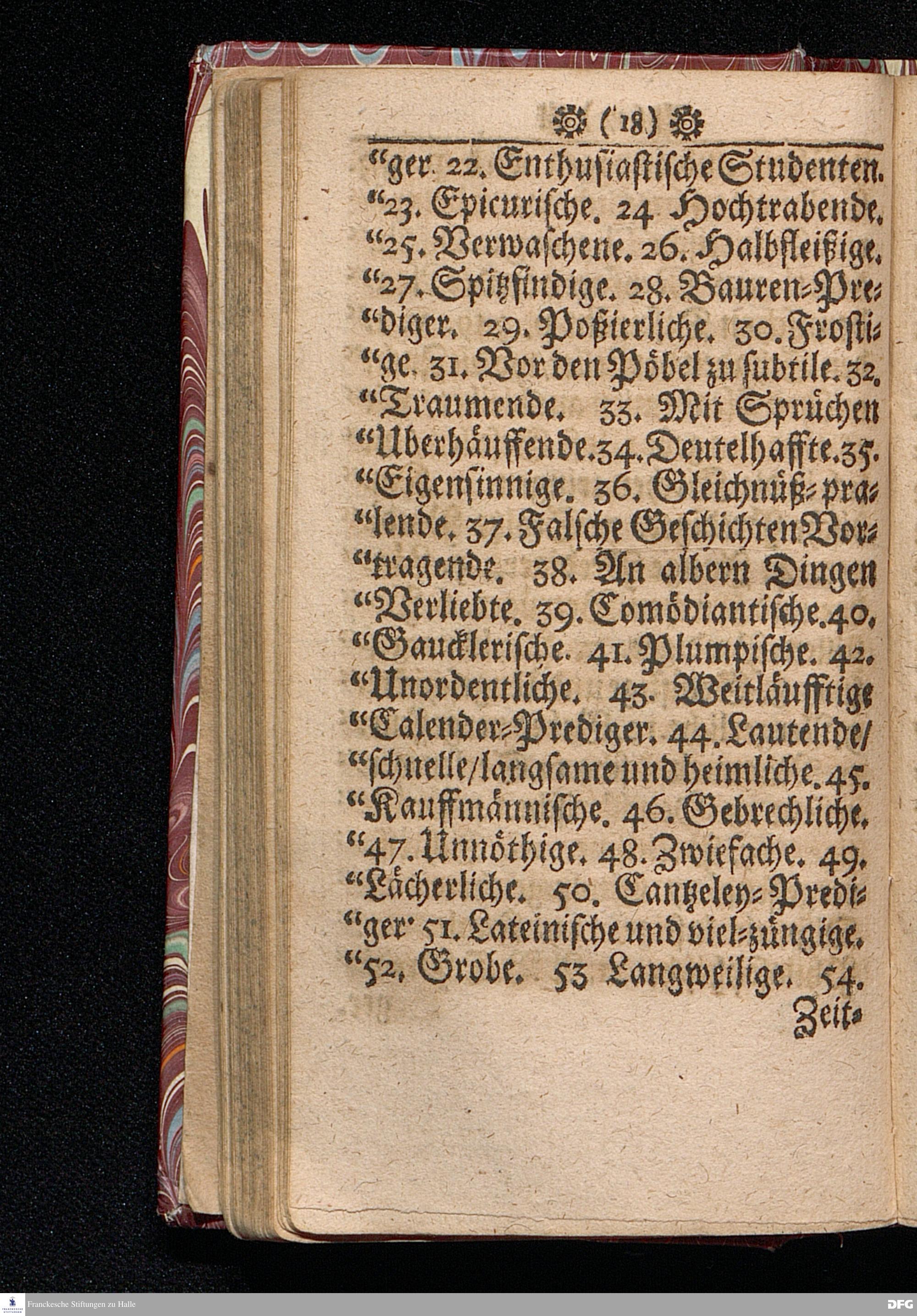 Timotheus Zum Fürbilde Allen Theologiæ Studiosis dargestellet von M.Aug.Hermann Francken / Gr.& Or.Lingg.P.P.& P.Glauch. Editio secunda & auctior. [Bibelzitat.] Halle / verlegts Joh.Friedrich Zeitler. 1695.