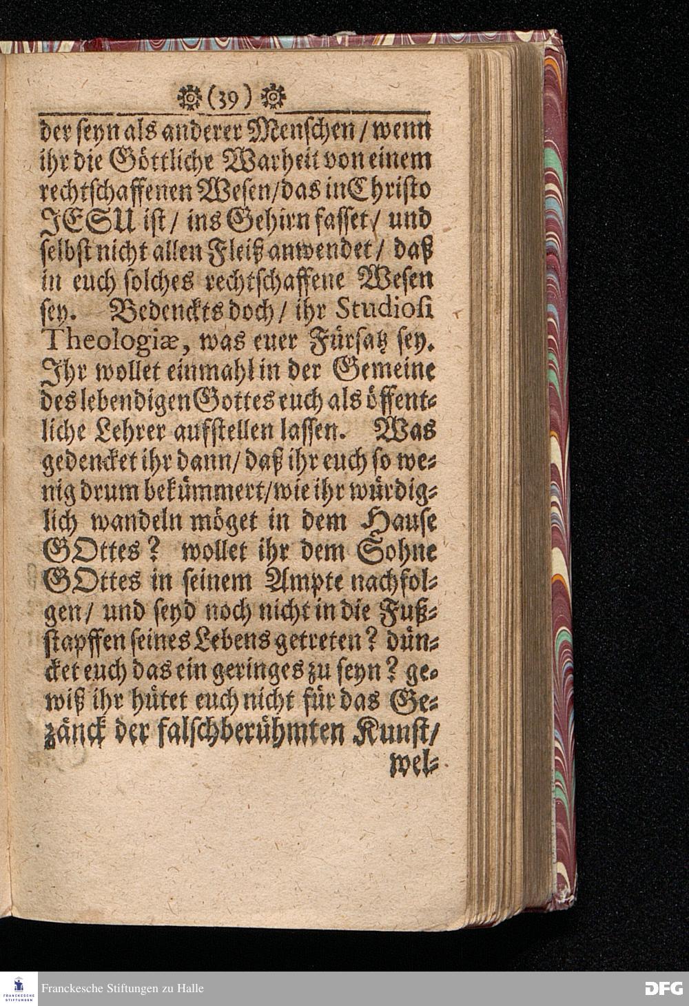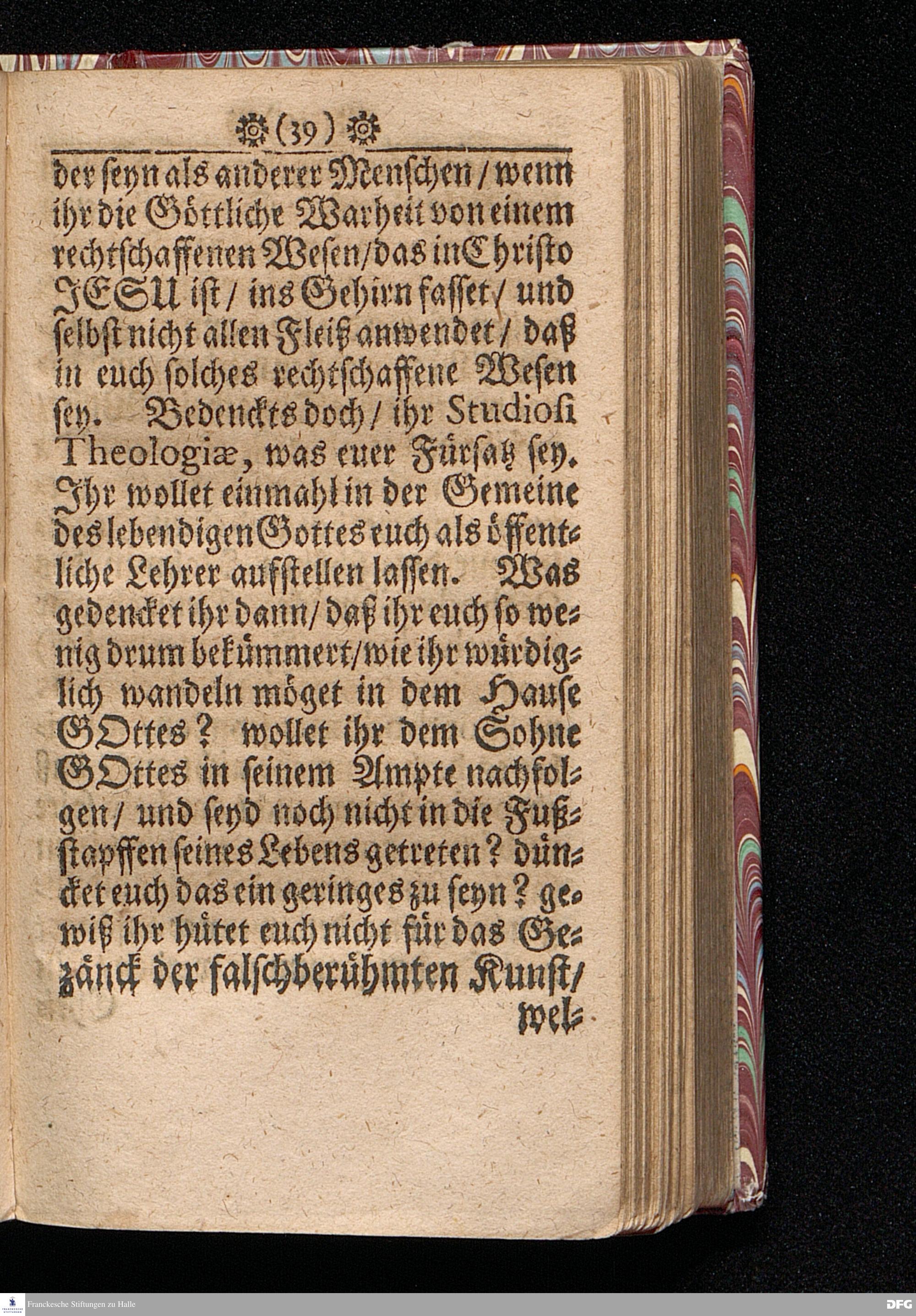 Timotheus Zum Fürbilde Allen Theologiæ Studiosis dargestellet von M.Aug.Hermann Francken / Gr.& Or.Lingg.P.P.& P.Glauch. Editio secunda & auctior. [Bibelzitat.] Halle / verlegts Joh.Friedrich Zeitler. 1695.