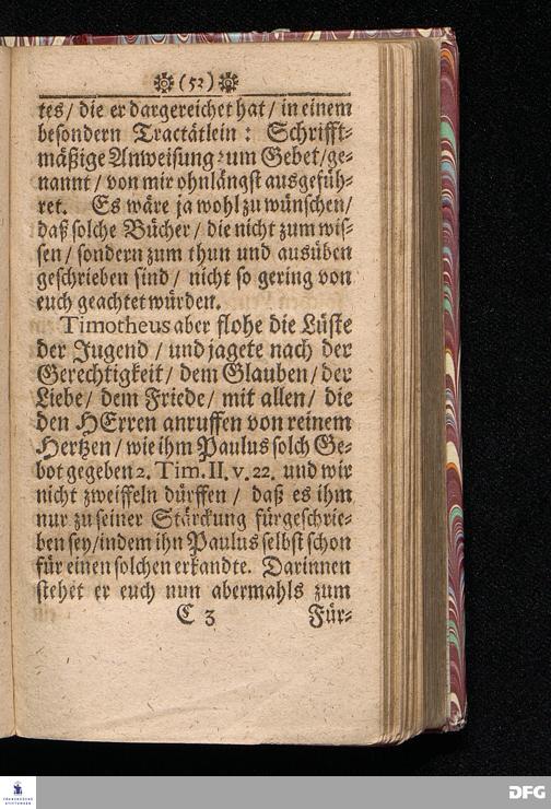 Timotheus Zum Fürbilde Allen Theologiæ Studiosis dargestellet von M.Aug.Hermann Francken / Gr.& Or.Lingg.P.P.& P.Glauch. Editio secunda & auctior. [Bibelzitat.] Halle / verlegts Joh.Friedrich Zeitler. 1695.