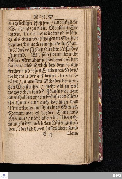 Timotheus Zum Fürbilde Allen Theologiæ Studiosis dargestellet von M.Aug.Hermann Francken / Gr.& Or.Lingg.P.P.& P.Glauch. Editio secunda & auctior. [Bibelzitat.] Halle / verlegts Joh.Friedrich Zeitler. 1695.