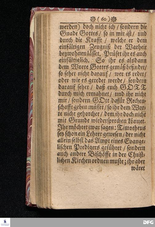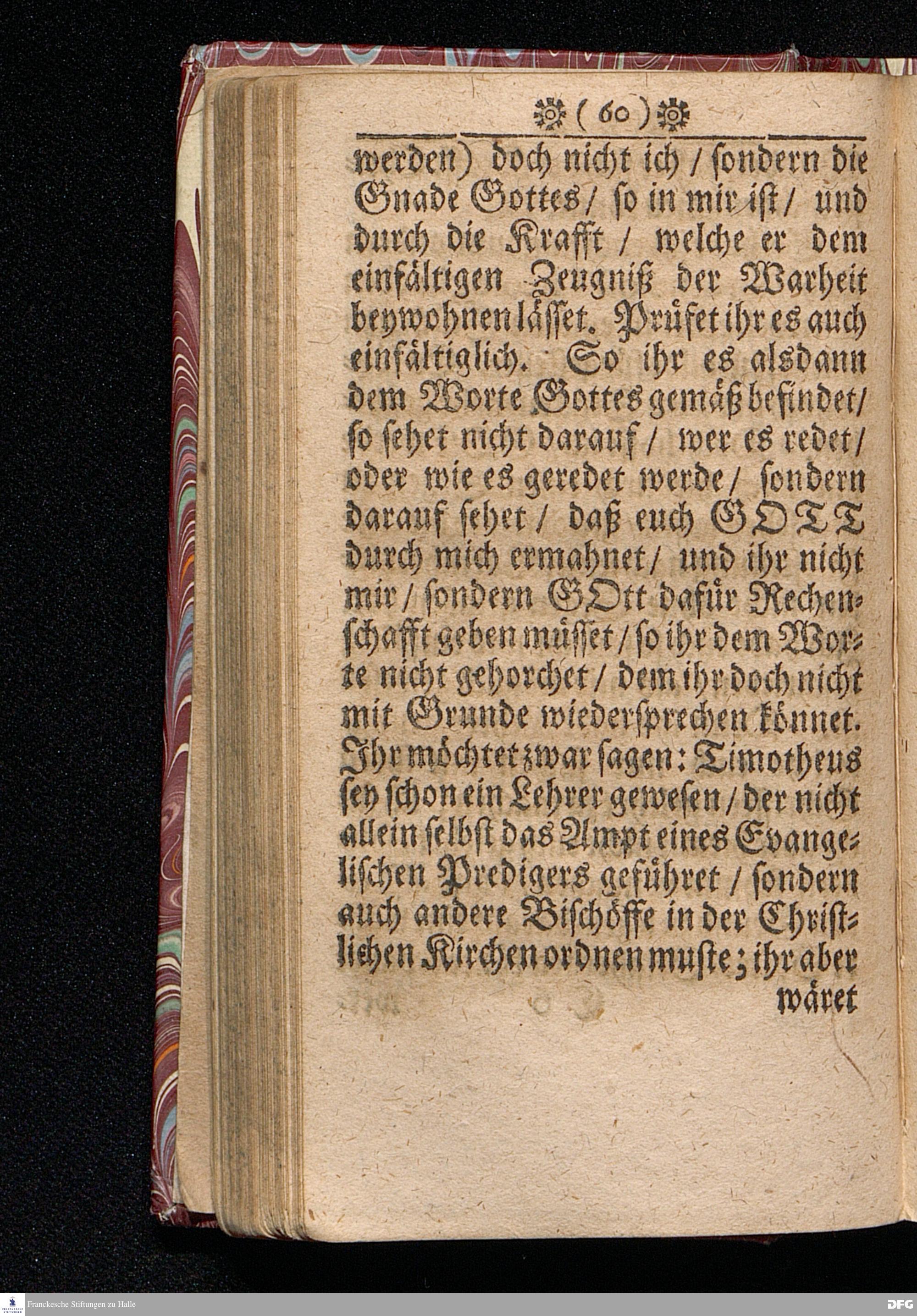 Timotheus Zum Fürbilde Allen Theologiæ Studiosis dargestellet von M.Aug.Hermann Francken / Gr.& Or.Lingg.P.P.& P.Glauch. Editio secunda & auctior. [Bibelzitat.] Halle / verlegts Joh.Friedrich Zeitler. 1695.