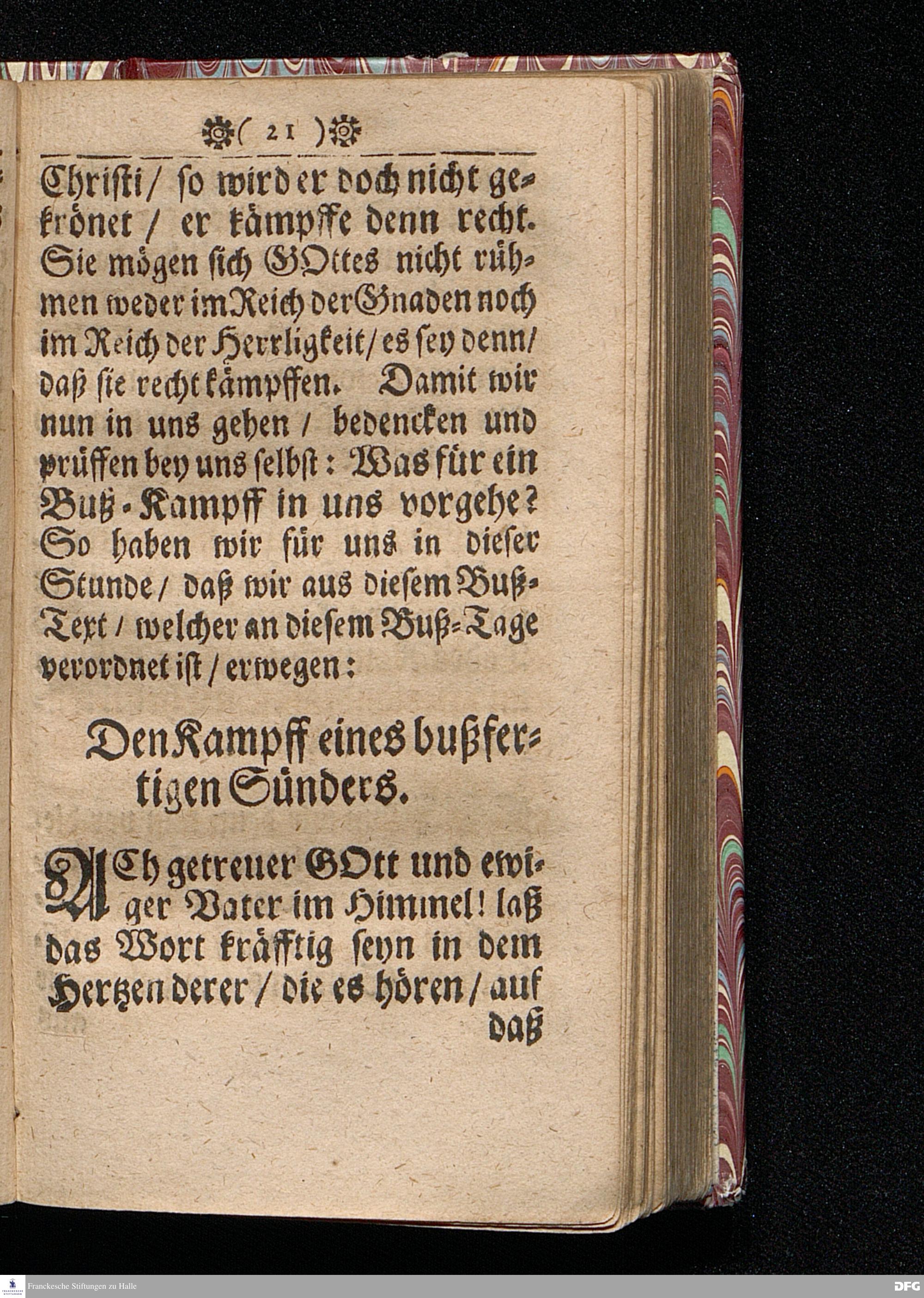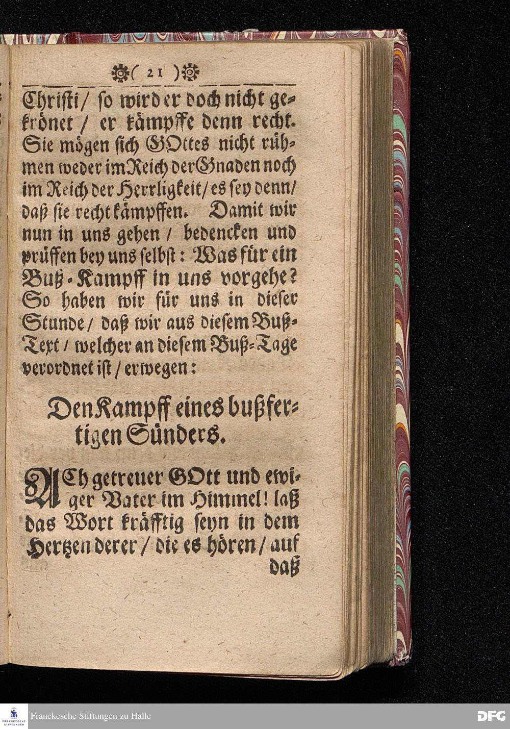 M.Aug.Hermann Franckens Gr.& Or.Lingg.Pr.Ord.& Past.Glauch. Busz=Predigt über Ps.LI, v.11,12,13. darinnen Der Kampff eines Bußfertigen Sünders vorgestellet worden Den 5.Jun. M.DC.XCV. In der St.Georgen Kirche zu Glauche an Halle. Halle / Gedruckt bey Christoph Salfelden.