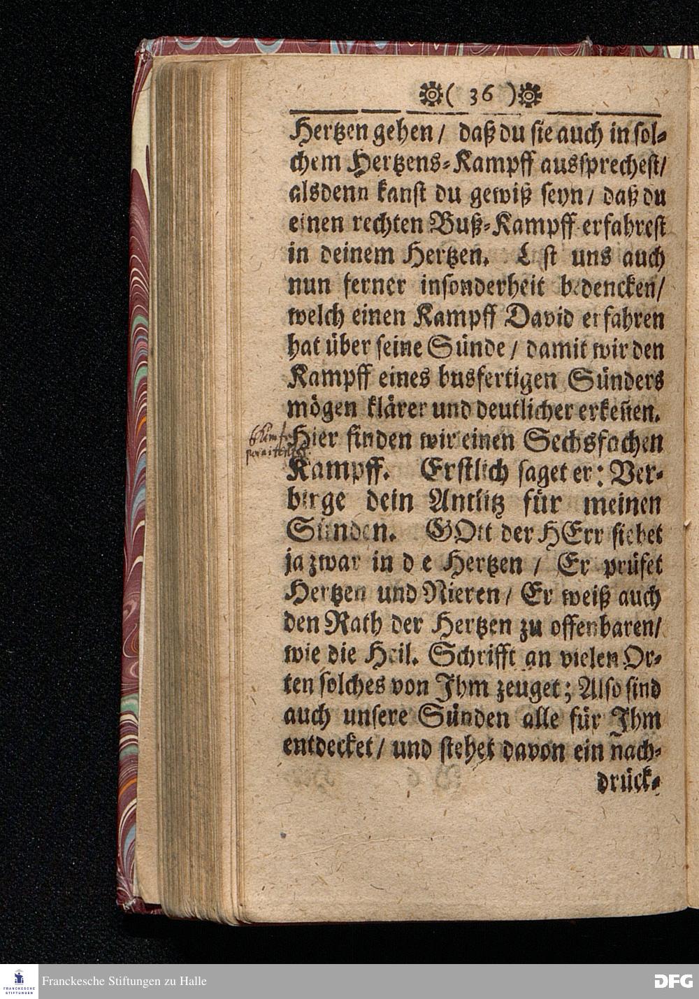 M.Aug.Hermann Franckens Gr.& Or.Lingg.Pr.Ord.& Past.Glauch. Busz=Predigt über Ps.LI, v.11,12,13. darinnen Der Kampff eines Bußfertigen Sünders vorgestellet worden Den 5.Jun. M.DC.XCV. In der St.Georgen Kirche zu Glauche an Halle. Halle / Gedruckt bey Christoph Salfelden.