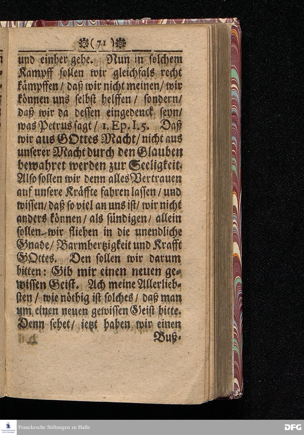 M.Aug.Hermann Franckens Gr.& Or.Lingg.Pr.Ord.& Past.Glauch. Busz=Predigt über Ps.LI, v.11,12,13. darinnen Der Kampff eines Bußfertigen Sünders vorgestellet worden Den 5.Jun. M.DC.XCV. In der St.Georgen Kirche zu Glauche an Halle. Halle / Gedruckt bey Christoph Salfelden.