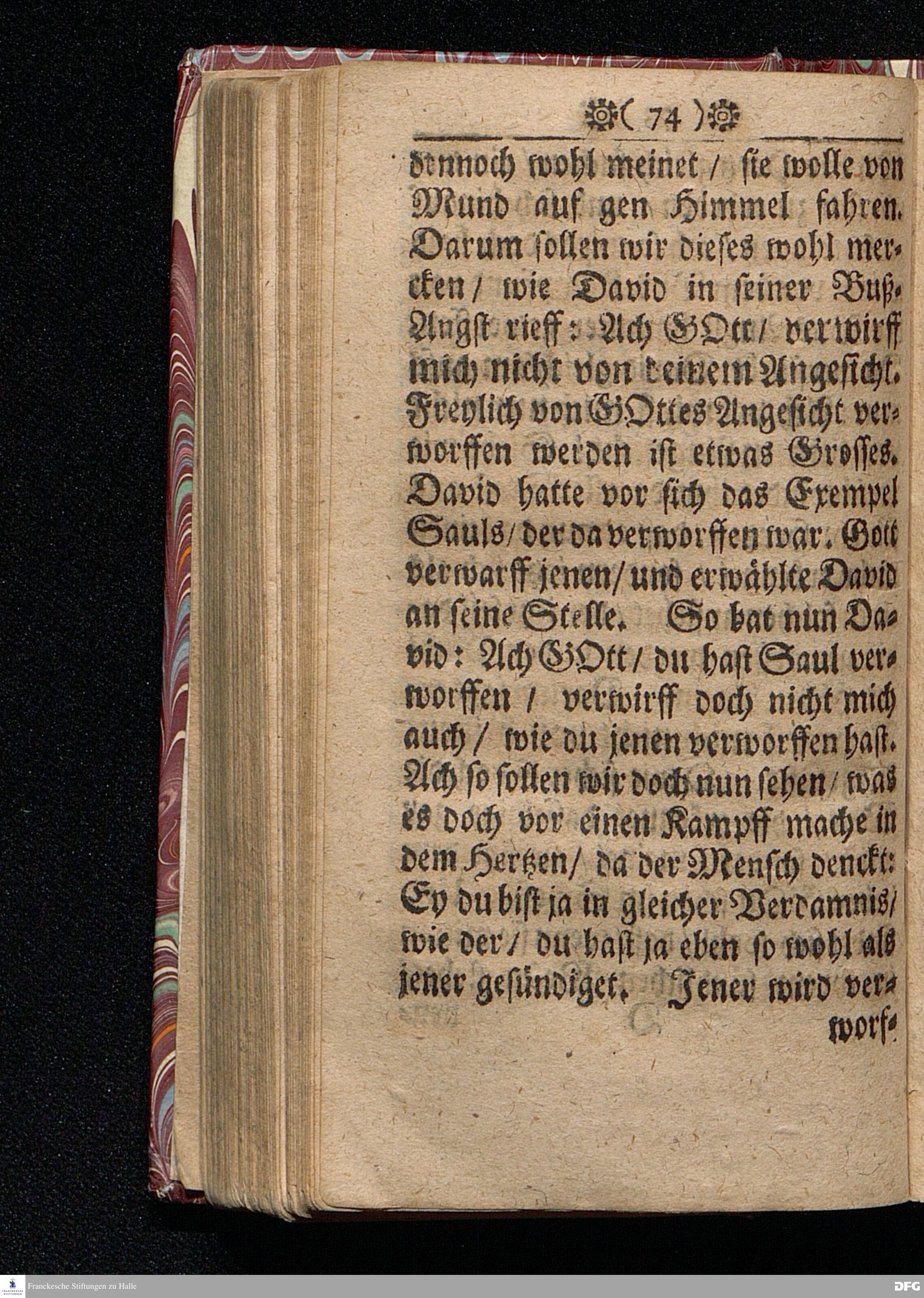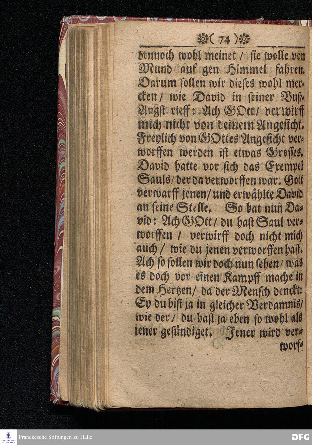 M.Aug.Hermann Franckens Gr.& Or.Lingg.Pr.Ord.& Past.Glauch. Busz=Predigt über Ps.LI, v.11,12,13. darinnen Der Kampff eines Bußfertigen Sünders vorgestellet worden Den 5.Jun. M.DC.XCV. In der St.Georgen Kirche zu Glauche an Halle. Halle / Gedruckt bey Christoph Salfelden.