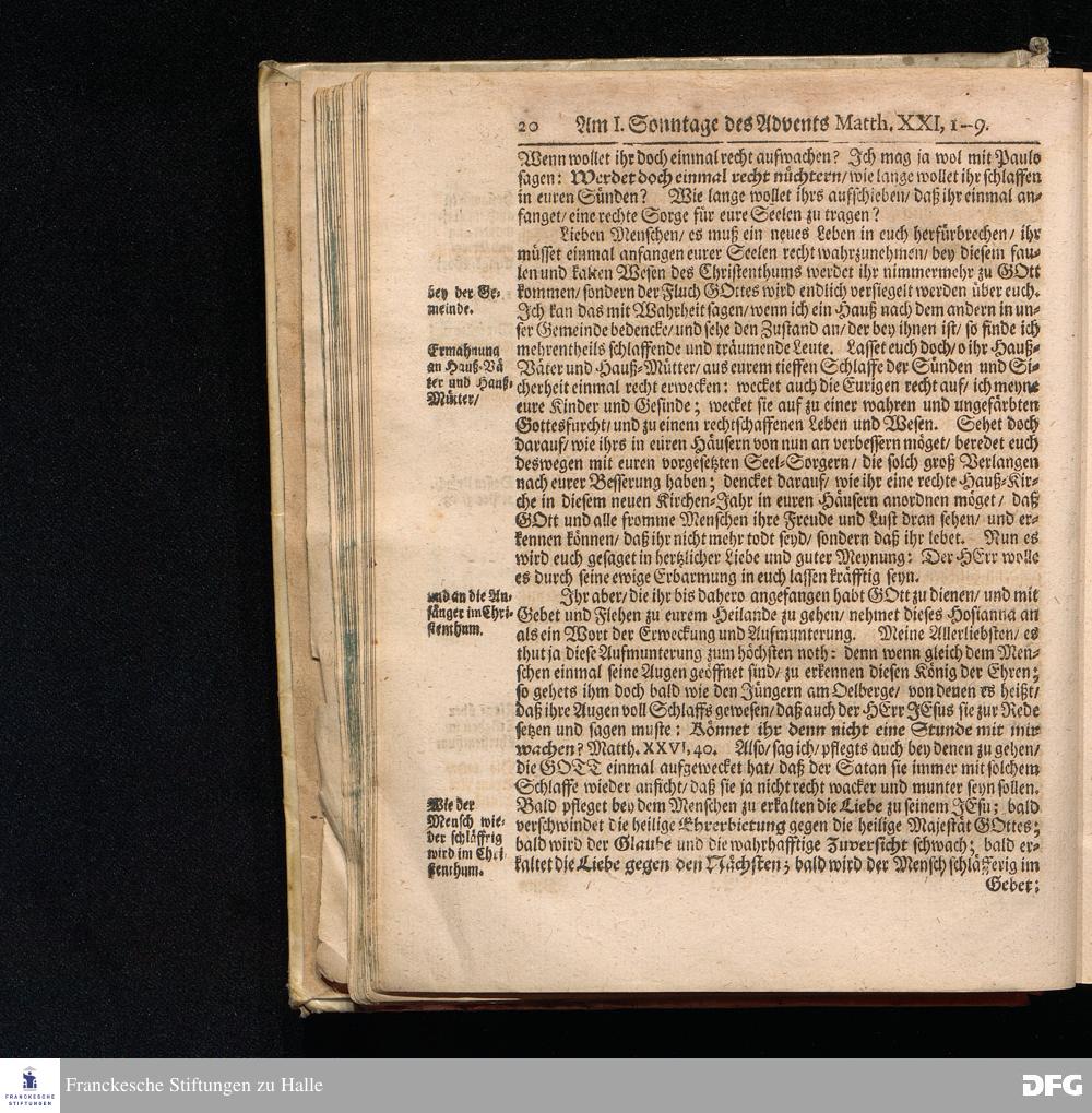 August Hermann Franckens S.Theol.Prof.und Past. Sonn= Fest= und Apostel=Tags=Predigten / Darinnen Die zum wahren Christenthum gehörige nöthigste und vornehmste Materien abgehandelt sind; Nunmehro von neuen wieder durchgesehen / und verbessert / Nebst den darzu nützlichen Registern. Die dritte Edition. HALLE / gedruckt und verlegt im Wäysenhause / MDCCIX. Mit Königl.Preuß.und Churfl.Brandenb.Privil.