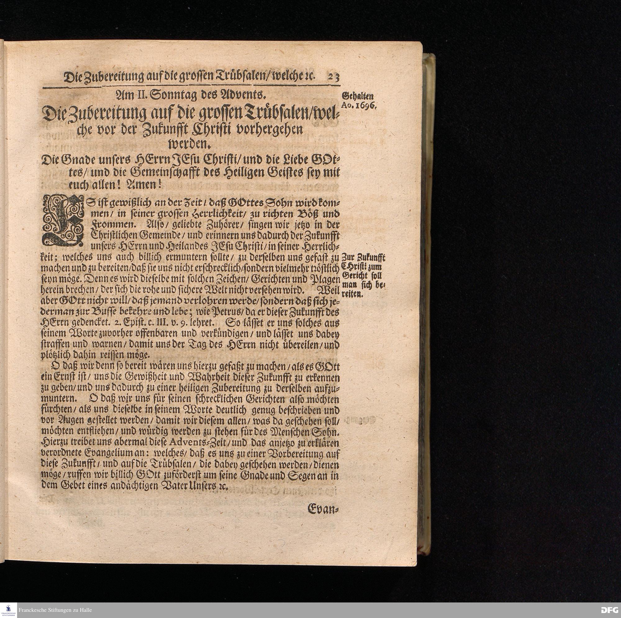August Hermann Franckens S.Theol.Prof.und Past. Sonn= Fest= und Apostel=Tags=Predigten / Darinnen Die zum wahren Christenthum gehörige nöthigste und vornehmste Materien abgehandelt sind; Nunmehro von neuen wieder durchgesehen / und verbessert / Nebst den darzu nützlichen Registern. Die dritte Edition. HALLE / gedruckt und verlegt im Wäysenhause / MDCCIX. Mit Königl.Preuß.und Churfl.Brandenb.Privil.