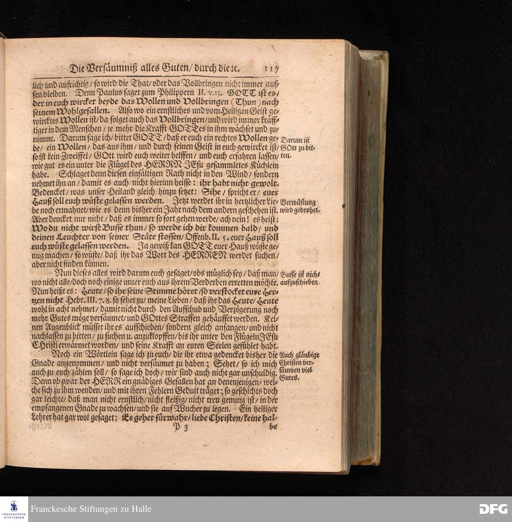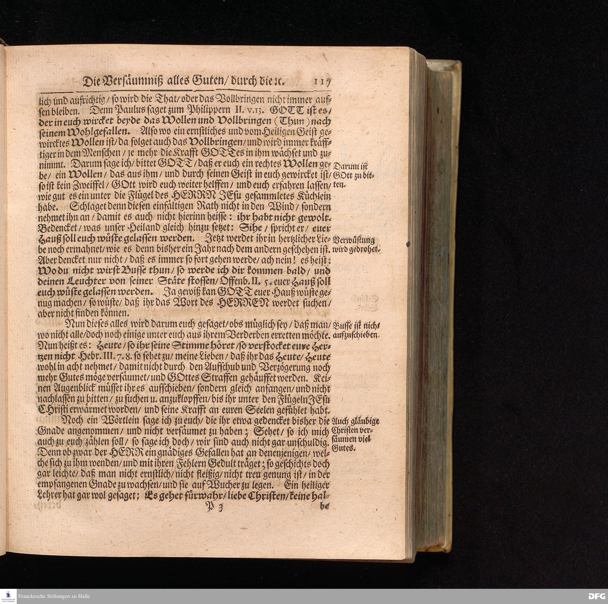 August Hermann Franckens S.Theol.Prof.und Past. Sonn= Fest= und Apostel=Tags=Predigten / Darinnen Die zum wahren Christenthum gehörige nöthigste und vornehmste Materien abgehandelt sind; Nunmehro von neuen wieder durchgesehen / und verbessert / Nebst den darzu nützlichen Registern. Die dritte Edition. HALLE / gedruckt und verlegt im Wäysenhause / MDCCIX. Mit Königl.Preuß.und Churfl.Brandenb.Privil.
