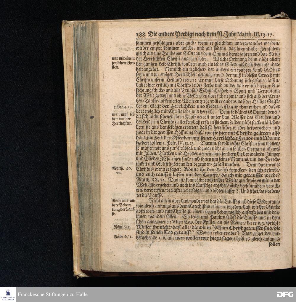 August Hermann Franckens S.Theol.Prof.und Past. Sonn= Fest= und Apostel=Tags=Predigten / Darinnen Die zum wahren Christenthum gehörige nöthigste und vornehmste Materien abgehandelt sind; Nunmehro von neuen wieder durchgesehen / und verbessert / Nebst den darzu nützlichen Registern. Die dritte Edition. HALLE / gedruckt und verlegt im Wäysenhause / MDCCIX. Mit Königl.Preuß.und Churfl.Brandenb.Privil.