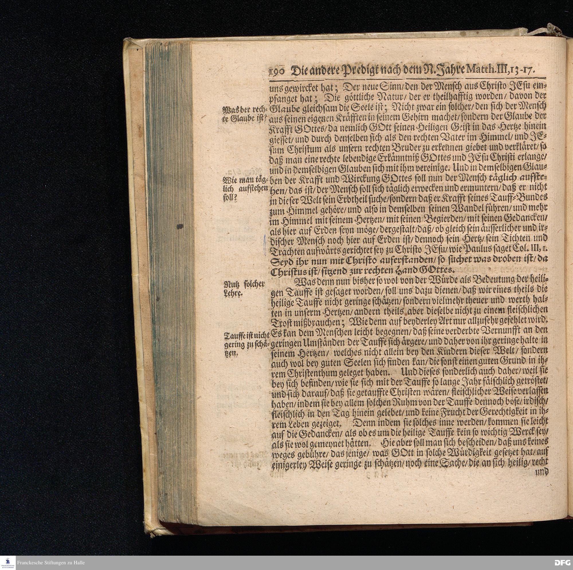 August Hermann Franckens S.Theol.Prof.und Past. Sonn= Fest= und Apostel=Tags=Predigten / Darinnen Die zum wahren Christenthum gehörige nöthigste und vornehmste Materien abgehandelt sind; Nunmehro von neuen wieder durchgesehen / und verbessert / Nebst den darzu nützlichen Registern. Die dritte Edition. HALLE / gedruckt und verlegt im Wäysenhause / MDCCIX. Mit Königl.Preuß.und Churfl.Brandenb.Privil.