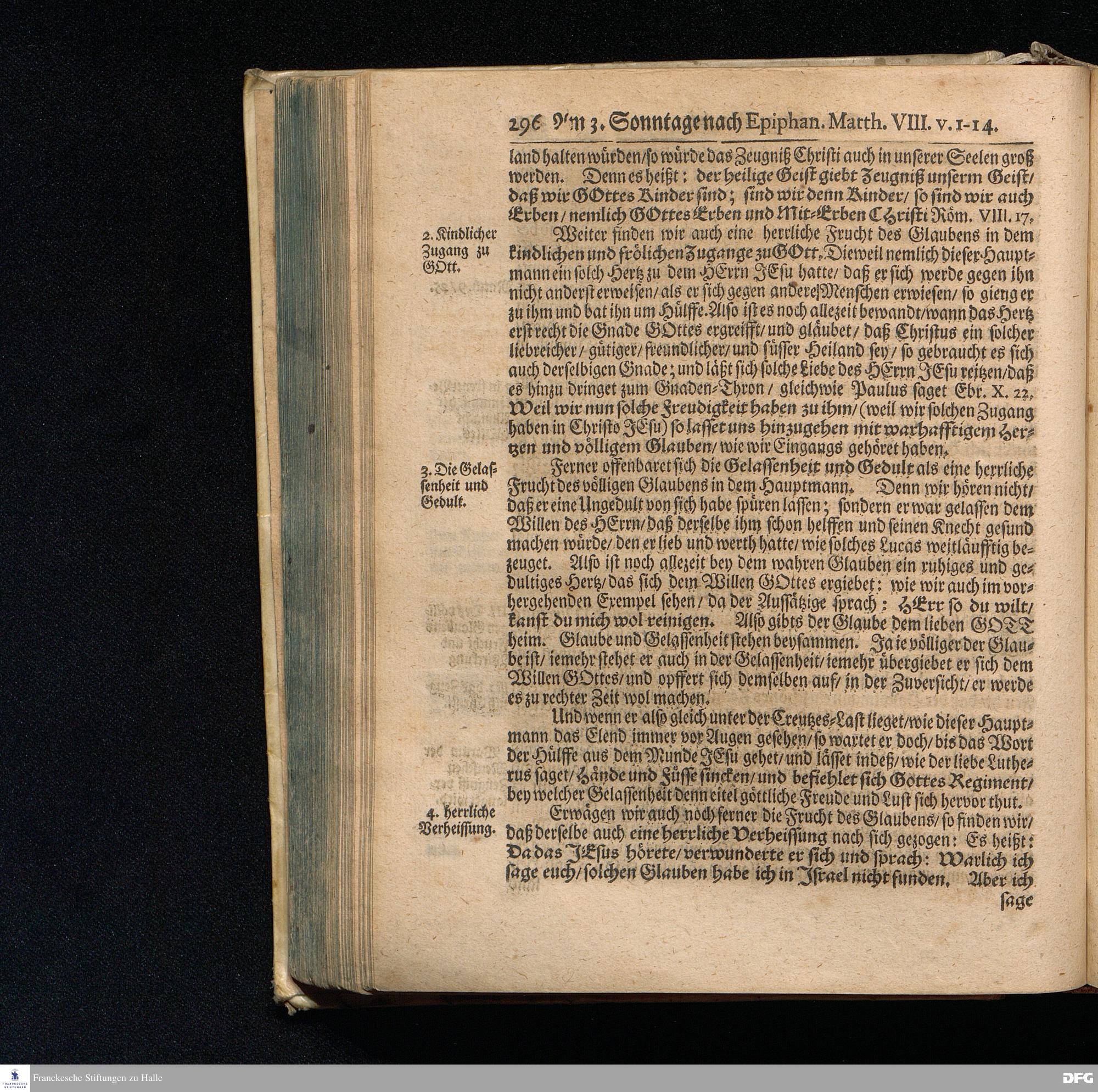 August Hermann Franckens S.Theol.Prof.und Past. Sonn= Fest= und Apostel=Tags=Predigten / Darinnen Die zum wahren Christenthum gehörige nöthigste und vornehmste Materien abgehandelt sind; Nunmehro von neuen wieder durchgesehen / und verbessert / Nebst den darzu nützlichen Registern. Die dritte Edition. HALLE / gedruckt und verlegt im Wäysenhause / MDCCIX. Mit Königl.Preuß.und Churfl.Brandenb.Privil.