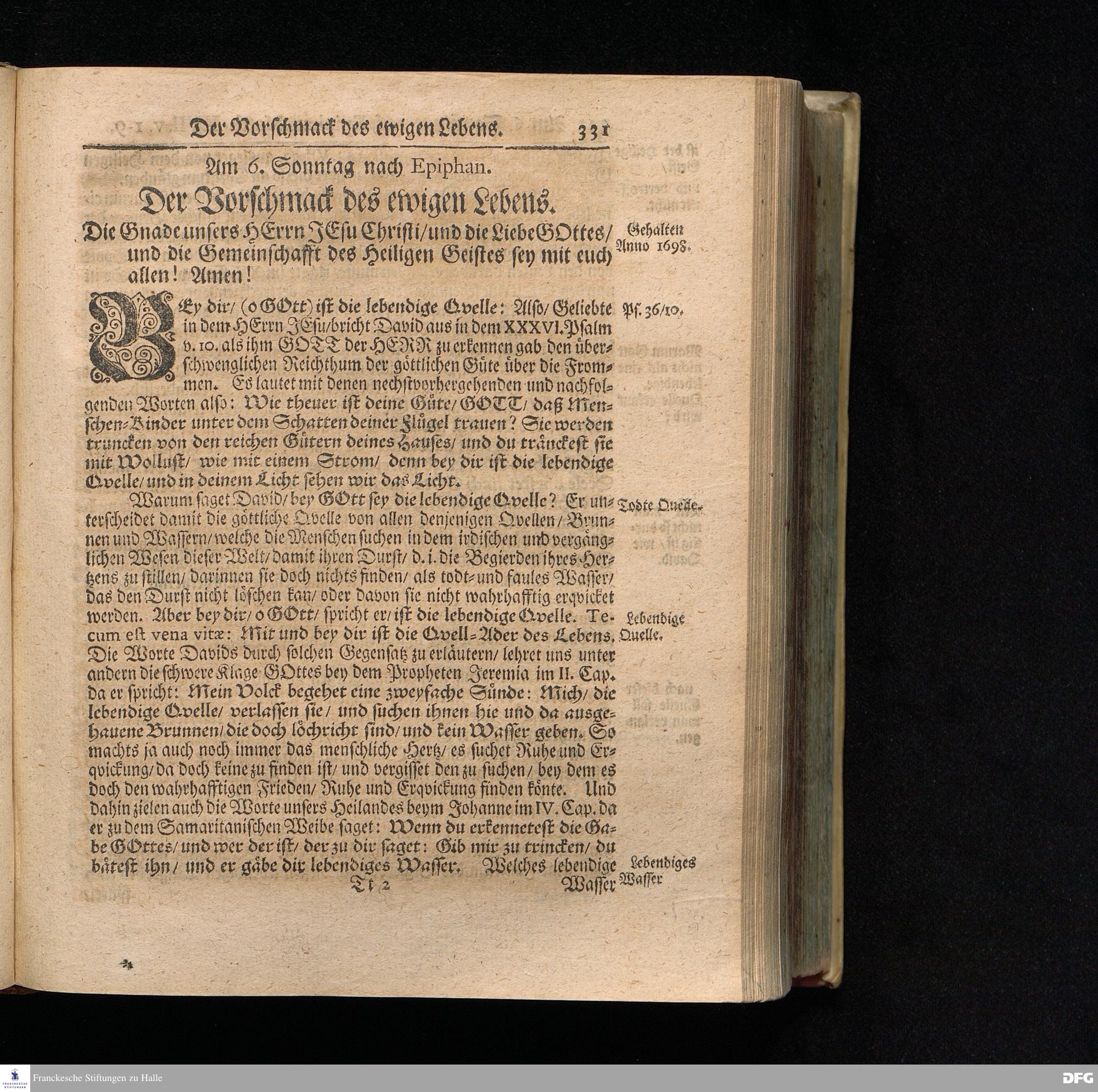 August Hermann Franckens S.Theol.Prof.und Past. Sonn= Fest= und Apostel=Tags=Predigten / Darinnen Die zum wahren Christenthum gehörige nöthigste und vornehmste Materien abgehandelt sind; Nunmehro von neuen wieder durchgesehen / und verbessert / Nebst den darzu nützlichen Registern. Die dritte Edition. HALLE / gedruckt und verlegt im Wäysenhause / MDCCIX. Mit Königl.Preuß.und Churfl.Brandenb.Privil.
