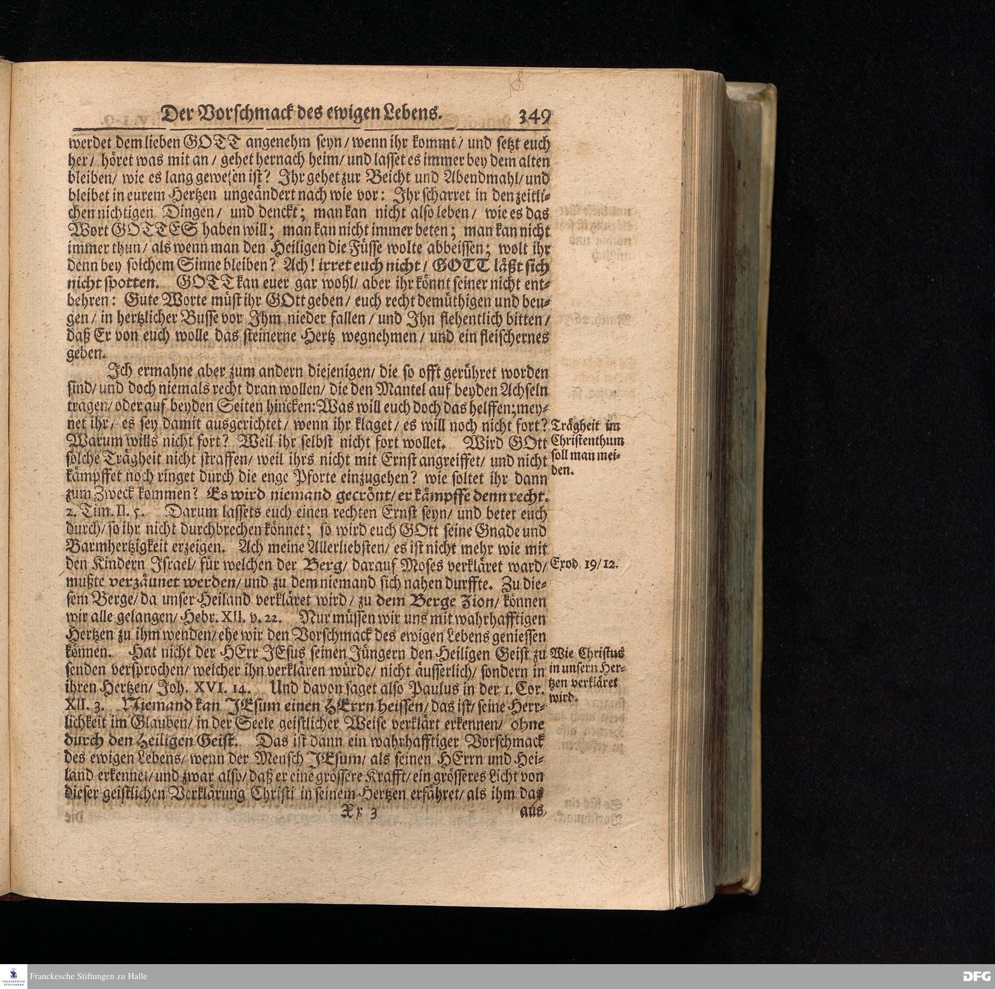 August Hermann Franckens S.Theol.Prof.und Past. Sonn= Fest= und Apostel=Tags=Predigten / Darinnen Die zum wahren Christenthum gehörige nöthigste und vornehmste Materien abgehandelt sind; Nunmehro von neuen wieder durchgesehen / und verbessert / Nebst den darzu nützlichen Registern. Die dritte Edition. HALLE / gedruckt und verlegt im Wäysenhause / MDCCIX. Mit Königl.Preuß.und Churfl.Brandenb.Privil.