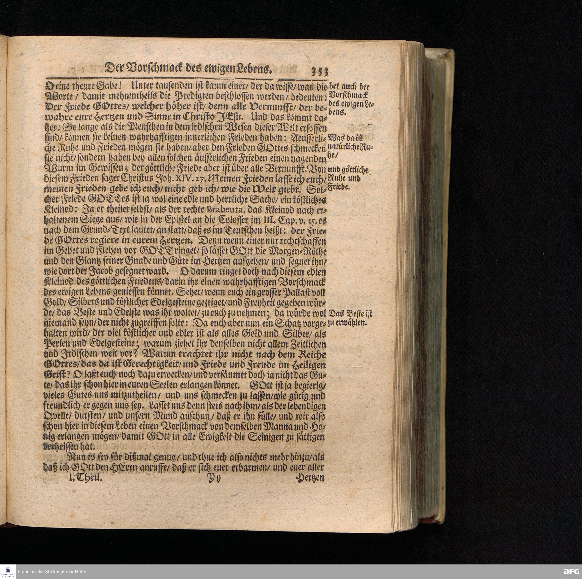 August Hermann Franckens S.Theol.Prof.und Past. Sonn= Fest= und Apostel=Tags=Predigten / Darinnen Die zum wahren Christenthum gehörige nöthigste und vornehmste Materien abgehandelt sind; Nunmehro von neuen wieder durchgesehen / und verbessert / Nebst den darzu nützlichen Registern. Die dritte Edition. HALLE / gedruckt und verlegt im Wäysenhause / MDCCIX. Mit Königl.Preuß.und Churfl.Brandenb.Privil.