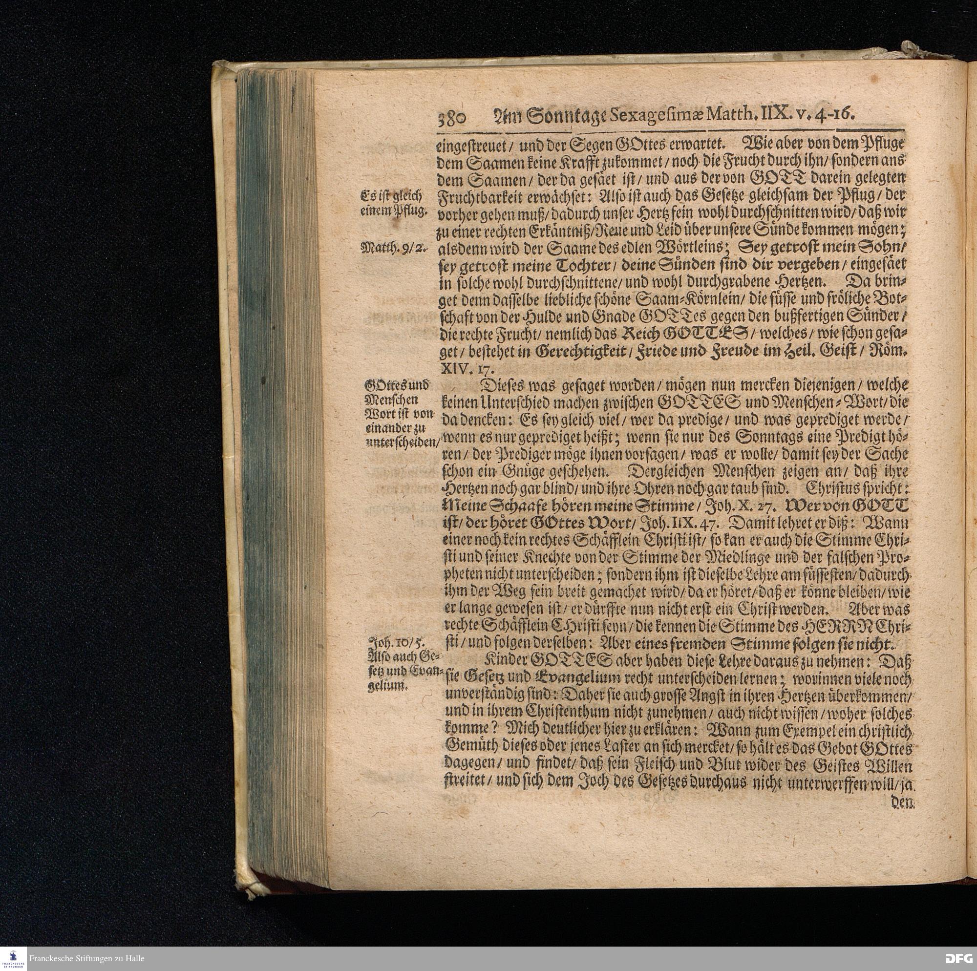 August Hermann Franckens S.Theol.Prof.und Past. Sonn= Fest= und Apostel=Tags=Predigten / Darinnen Die zum wahren Christenthum gehörige nöthigste und vornehmste Materien abgehandelt sind; Nunmehro von neuen wieder durchgesehen / und verbessert / Nebst den darzu nützlichen Registern. Die dritte Edition. HALLE / gedruckt und verlegt im Wäysenhause / MDCCIX. Mit Königl.Preuß.und Churfl.Brandenb.Privil.