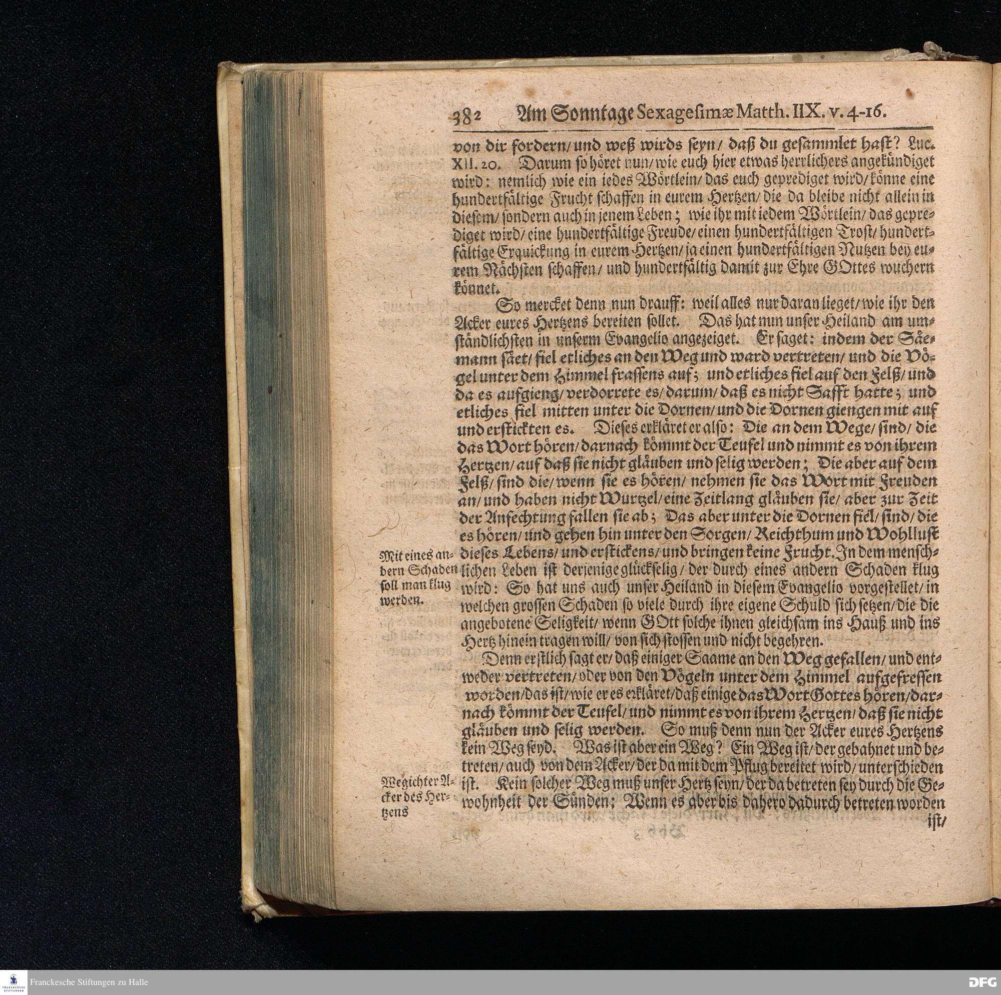 August Hermann Franckens S.Theol.Prof.und Past. Sonn= Fest= und Apostel=Tags=Predigten / Darinnen Die zum wahren Christenthum gehörige nöthigste und vornehmste Materien abgehandelt sind; Nunmehro von neuen wieder durchgesehen / und verbessert / Nebst den darzu nützlichen Registern. Die dritte Edition. HALLE / gedruckt und verlegt im Wäysenhause / MDCCIX. Mit Königl.Preuß.und Churfl.Brandenb.Privil.