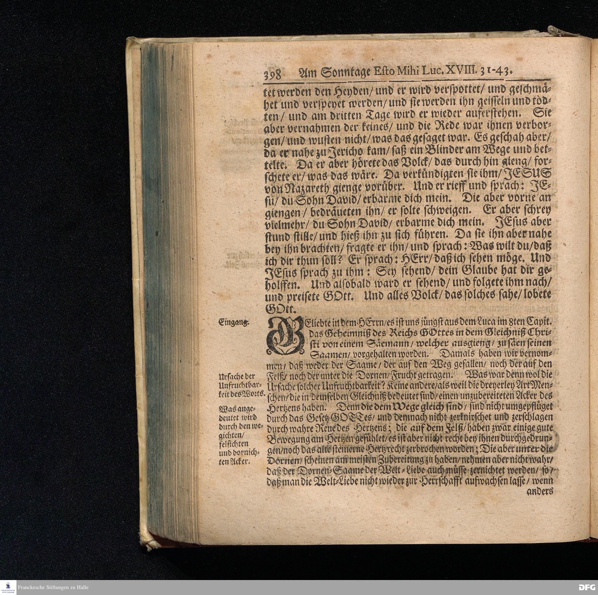 August Hermann Franckens S.Theol.Prof.und Past. Sonn= Fest= und Apostel=Tags=Predigten / Darinnen Die zum wahren Christenthum gehörige nöthigste und vornehmste Materien abgehandelt sind; Nunmehro von neuen wieder durchgesehen / und verbessert / Nebst den darzu nützlichen Registern. Die dritte Edition. HALLE / gedruckt und verlegt im Wäysenhause / MDCCIX. Mit Königl.Preuß.und Churfl.Brandenb.Privil.