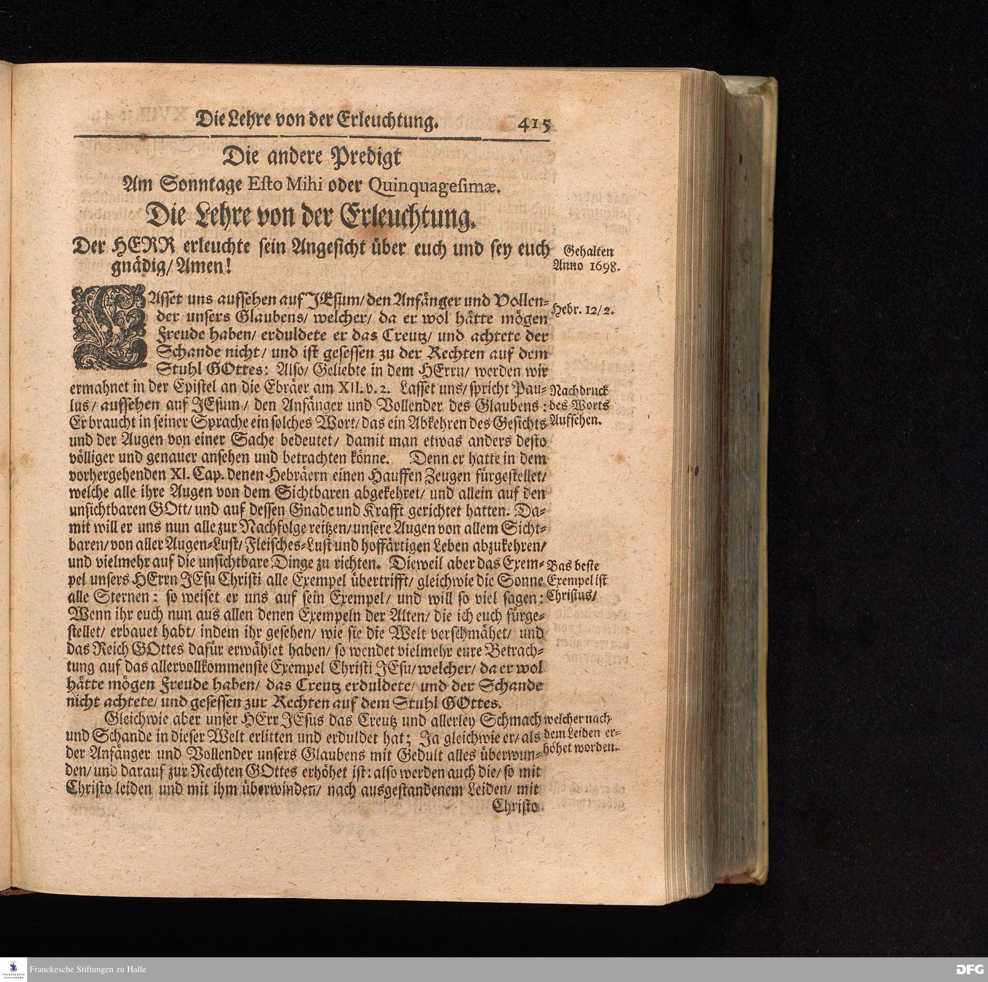 August Hermann Franckens S.Theol.Prof.und Past. Sonn= Fest= und Apostel=Tags=Predigten / Darinnen Die zum wahren Christenthum gehörige nöthigste und vornehmste Materien abgehandelt sind; Nunmehro von neuen wieder durchgesehen / und verbessert / Nebst den darzu nützlichen Registern. Die dritte Edition. HALLE / gedruckt und verlegt im Wäysenhause / MDCCIX. Mit Königl.Preuß.und Churfl.Brandenb.Privil.