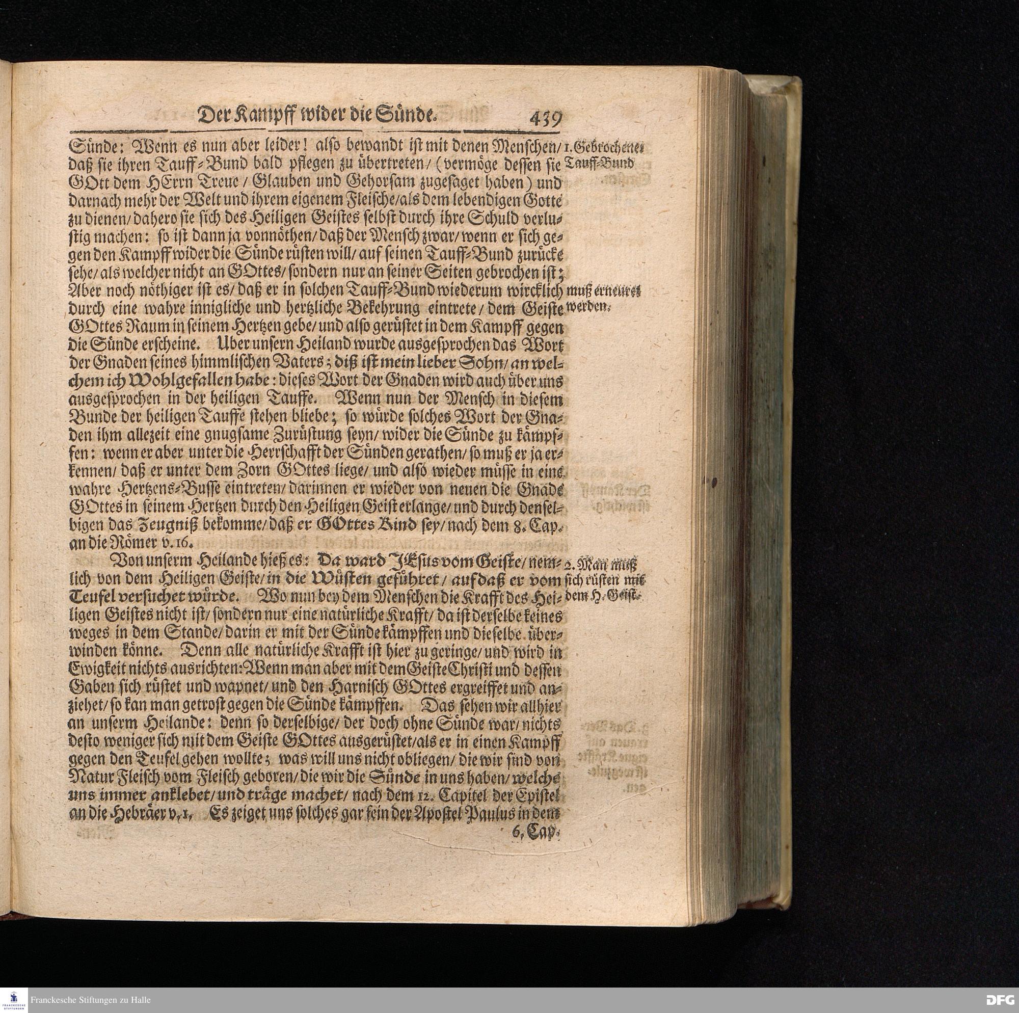 August Hermann Franckens S.Theol.Prof.und Past. Sonn= Fest= und Apostel=Tags=Predigten / Darinnen Die zum wahren Christenthum gehörige nöthigste und vornehmste Materien abgehandelt sind; Nunmehro von neuen wieder durchgesehen / und verbessert / Nebst den darzu nützlichen Registern. Die dritte Edition. HALLE / gedruckt und verlegt im Wäysenhause / MDCCIX. Mit Königl.Preuß.und Churfl.Brandenb.Privil.