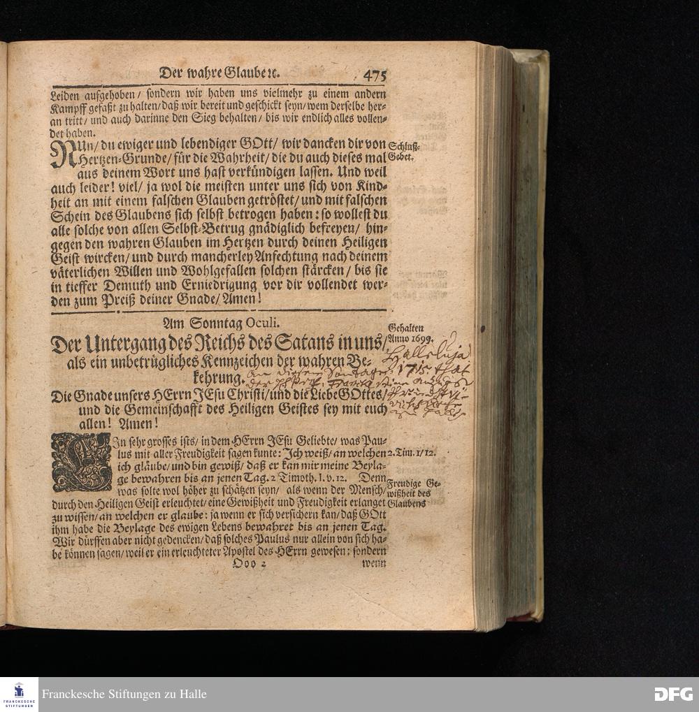 August Hermann Franckens S.Theol.Prof.und Past. Sonn= Fest= und Apostel=Tags=Predigten / Darinnen Die zum wahren Christenthum gehörige nöthigste und vornehmste Materien abgehandelt sind; Nunmehro von neuen wieder durchgesehen / und verbessert / Nebst den darzu nützlichen Registern. Die dritte Edition. HALLE / gedruckt und verlegt im Wäysenhause / MDCCIX. Mit Königl.Preuß.und Churfl.Brandenb.Privil.