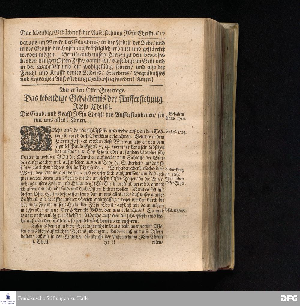 August Hermann Franckens S.Theol.Prof.und Past. Sonn= Fest= und Apostel=Tags=Predigten / Darinnen Die zum wahren Christenthum gehörige nöthigste und vornehmste Materien abgehandelt sind; Nunmehro von neuen wieder durchgesehen / und verbessert / Nebst den darzu nützlichen Registern. Die dritte Edition. HALLE / gedruckt und verlegt im Wäysenhause / MDCCIX. Mit Königl.Preuß.und Churfl.Brandenb.Privil.