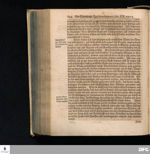 August Hermann Franckens S.Theol.Prof.und Past. Sonn= Fest= und Apostel=Tags=Predigten / Darinnen Die zum wahren Christenthum gehörige nöthigste und vornehmste Materien abgehandelt sind; Nunmehro von neuen wieder durchgesehen / und verbessert / Nebst den darzu nützlichen Registern. Die dritte Edition. HALLE / gedruckt und verlegt im Wäysenhause / MDCCIX. Mit Königl.Preuß.und Churfl.Brandenb.Privil.