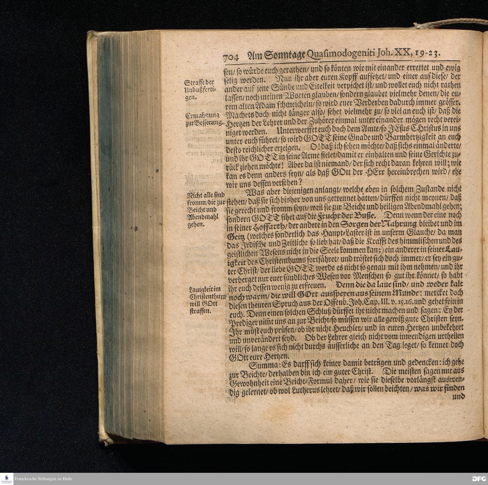 August Hermann Franckens S.Theol.Prof.und Past. Sonn= Fest= und Apostel=Tags=Predigten / Darinnen Die zum wahren Christenthum gehörige nöthigste und vornehmste Materien abgehandelt sind; Nunmehro von neuen wieder durchgesehen / und verbessert / Nebst den darzu nützlichen Registern. Die dritte Edition. HALLE / gedruckt und verlegt im Wäysenhause / MDCCIX. Mit Königl.Preuß.und Churfl.Brandenb.Privil.