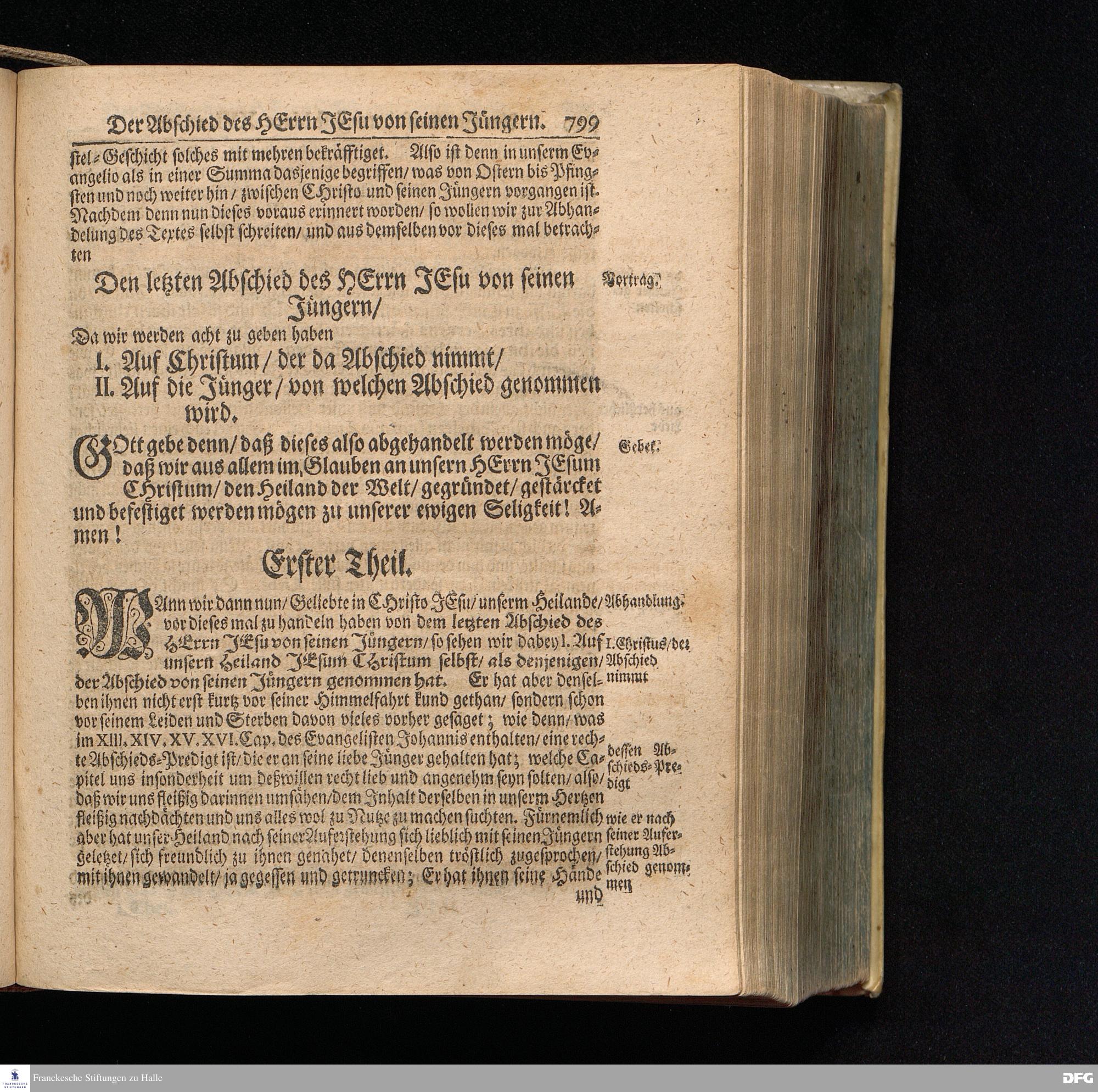 August Hermann Franckens S.Theol.Prof.und Past. Sonn= Fest= und Apostel=Tags=Predigten / Darinnen Die zum wahren Christenthum gehörige nöthigste und vornehmste Materien abgehandelt sind; Nunmehro von neuen wieder durchgesehen / und verbessert / Nebst den darzu nützlichen Registern. Die dritte Edition. HALLE / gedruckt und verlegt im Wäysenhause / MDCCIX. Mit Königl.Preuß.und Churfl.Brandenb.Privil.